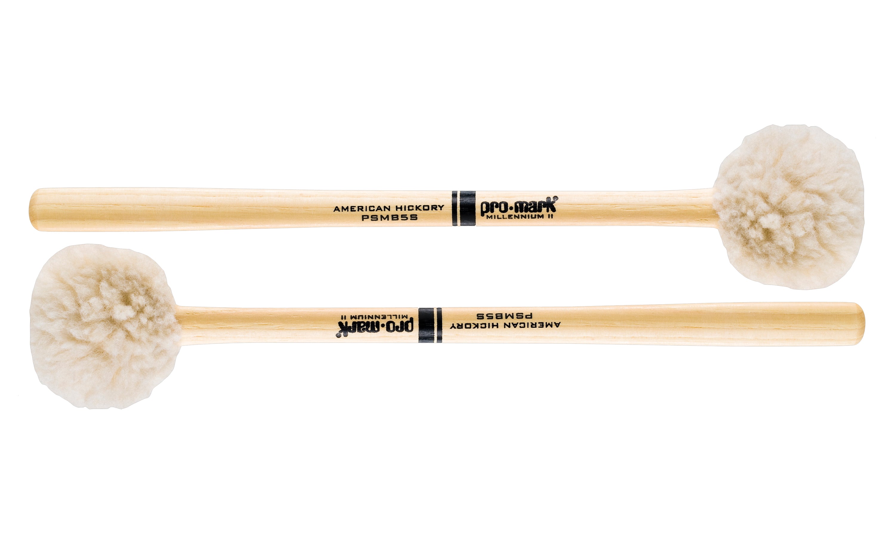 ProMark PSMB5S marching bass drum beaters feature balanced hickory handles with a taper underneath the puffy felt head. The PSMB5S is best suited for 28-30" drums. The Performer Series Bass Drum mallets are a practical choice for any bass line from beginners to competitive drum corps and college players.