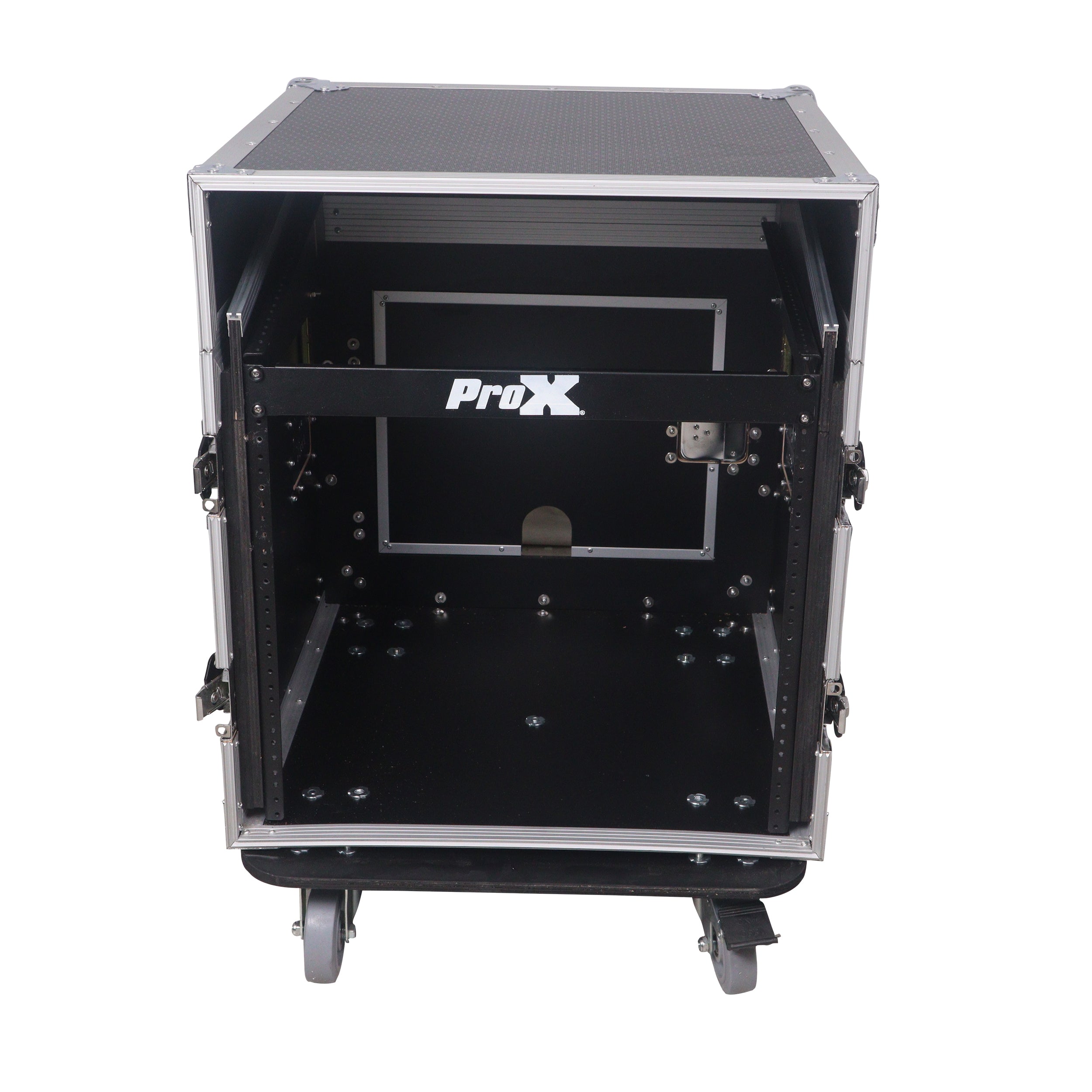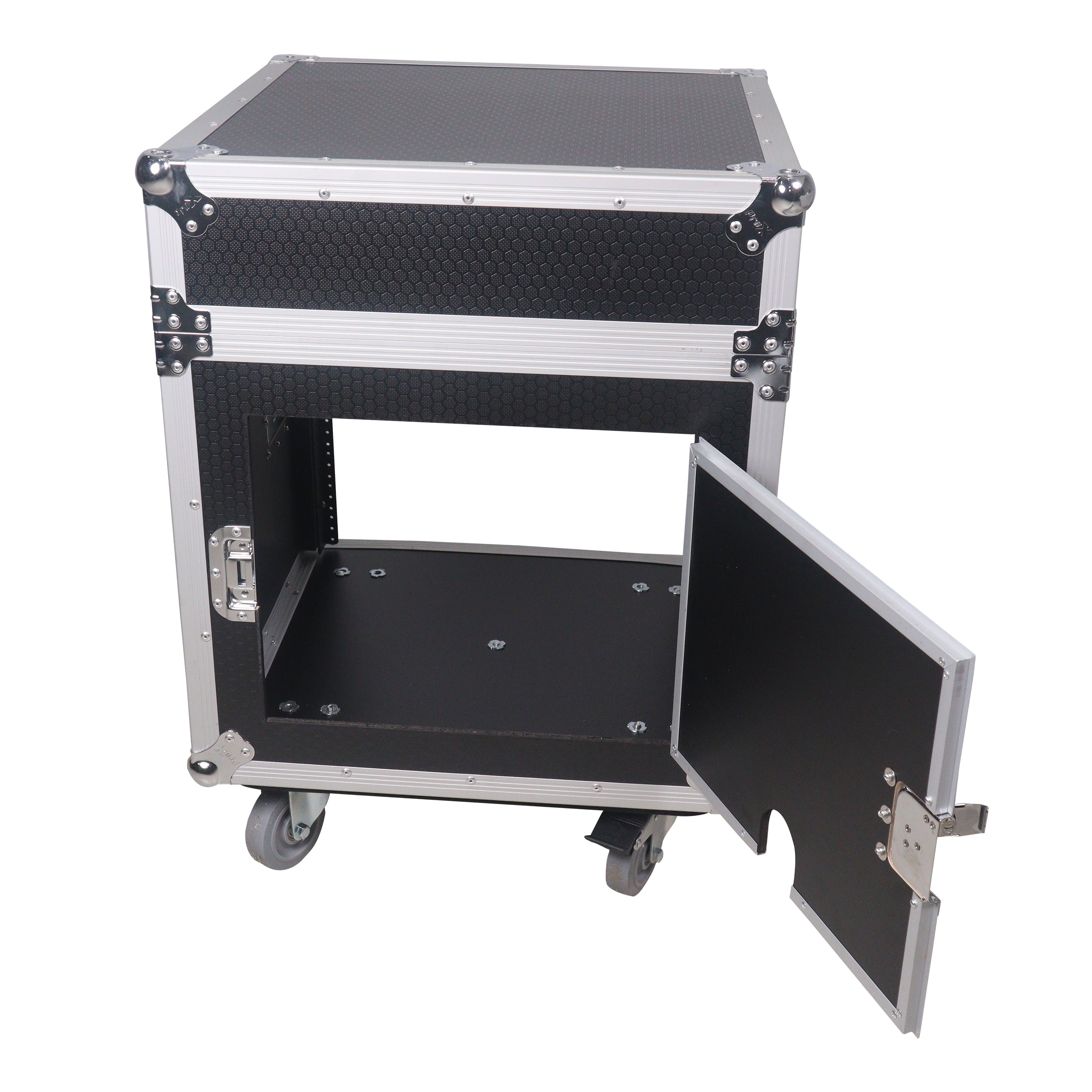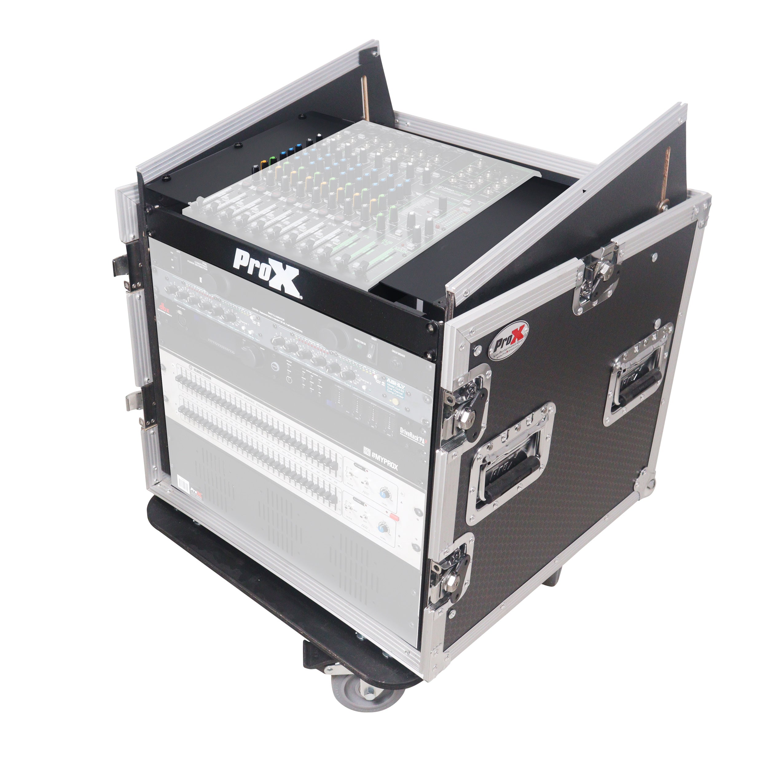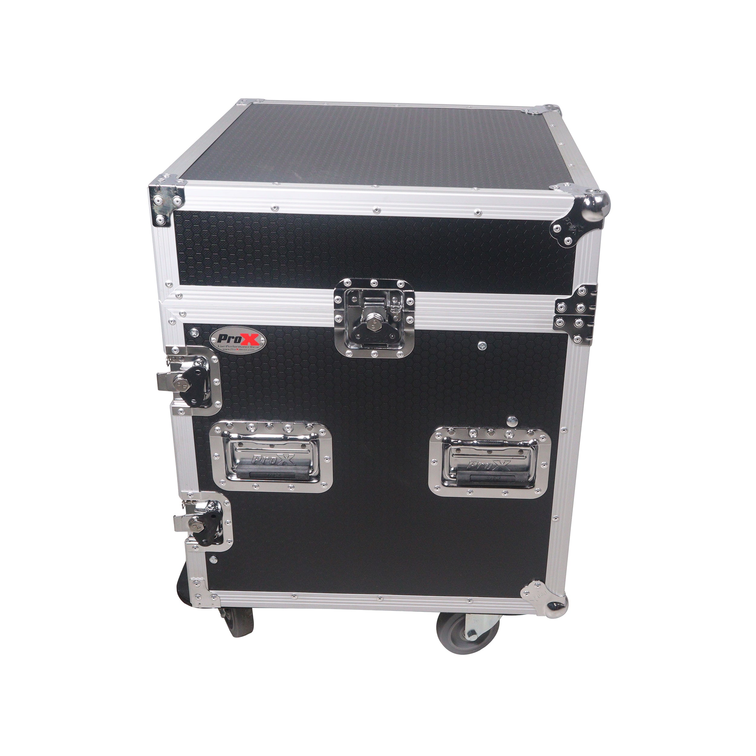 ProX T-12MRSS 10U Vertical Rack Mount Flight Case with 10U Top for Mixer Combo Amp Rack with Caster Wheels. Our vertical amplifier rack cases offer an ideal storage solution, ensuring convenient security for a diverse range of amplifiers, professional DJ mixers, effects units, and any other standard 19" rack-mountable Pro Audio, DJ, and Network equipment.