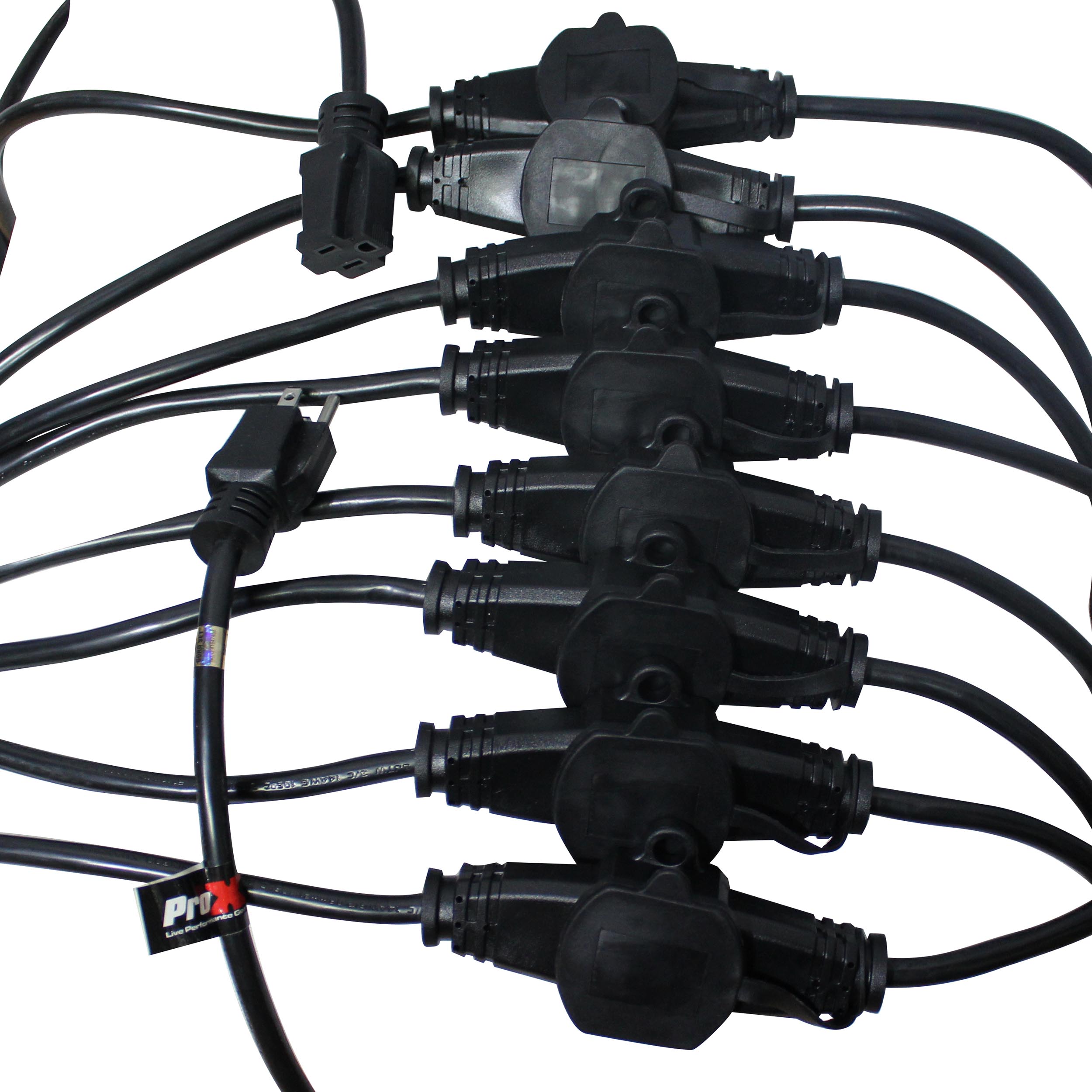 ProX XC-MEP14-529 52' Ft. Male NEMA 120VAC to 9-Outet Female Edison 14/3AWG Power Extension Cable These cables are made by professionals for professionals like you. Each cable is built for High Performance and to withstand heavy everyday use. These cables are rugged and can withstand most weather conditions and provide long-term resistance to everyday wear and tear.