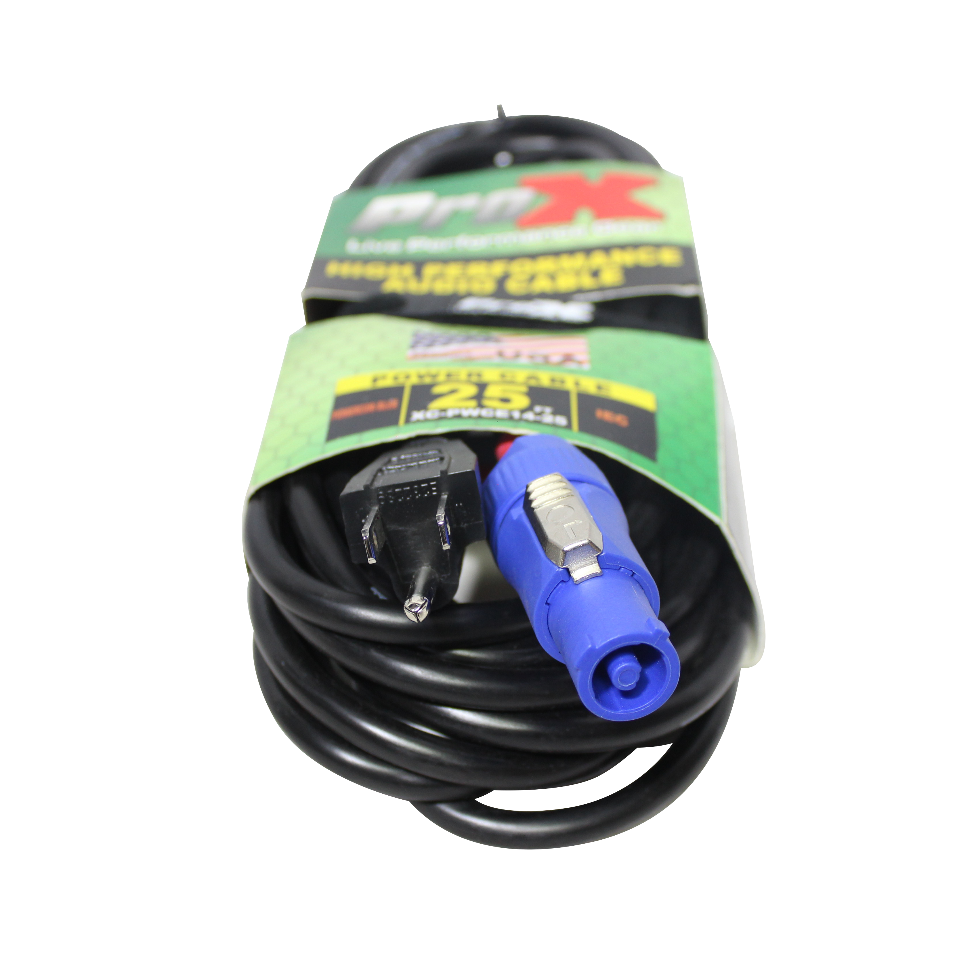 ProX XC-PWCE14-25 14 AWG High Performance Power Cord NEMA 5-15 Edison to Blue Male Power Connection - 25-foot
