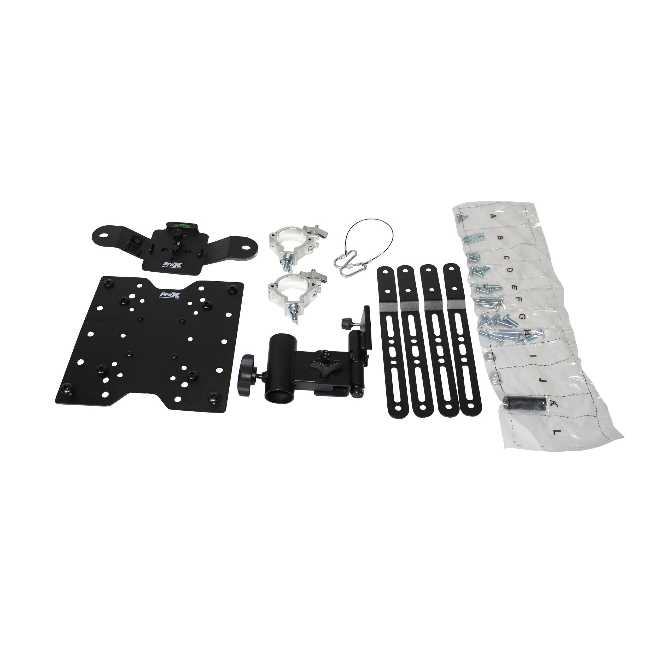 ProX XT-MEDIAMOUNT Universal TV/Monitor mount is a quick and easy mounting bracket that attaches (Non-Plasma) Flatscreen TVs from 32" to 80". XT-MEDIAMOUNT mount allows for easy, quick and stable mounting for your Flatscreen TV which can be mounted vertical or horizontal with ease. The speaker pole mounting bracket can be adjusted left, right, up, and down to desired viewing angle. It has maximum load capacity that supports up to 100lbs. The truss mounting bracket can be mounted to F34, F32, and 12" trussing. The included speaker stand mount connects to the VESA TV 1-3/8" Speaker Stands.