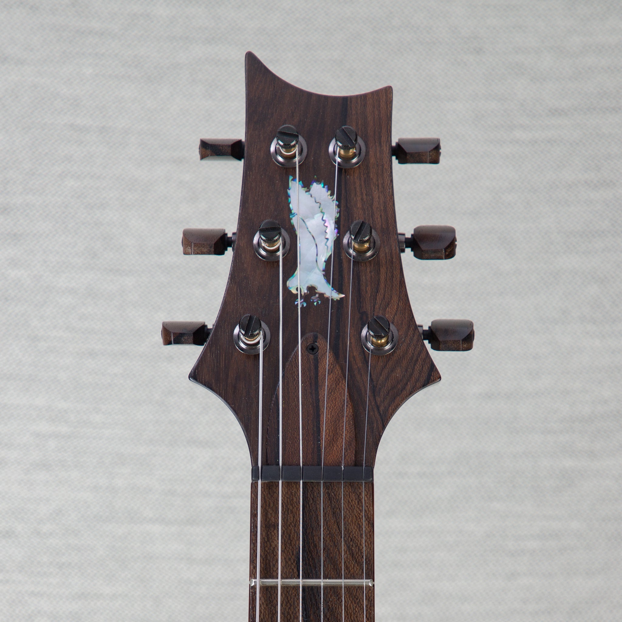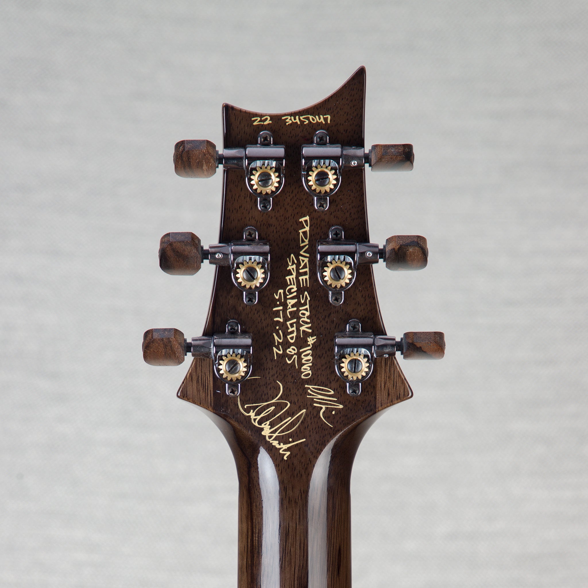This Private Stock limited edition features stunning woods from the Private Stock Vault, including a highly-figured maple top, a Black Limba back and neck, ziricote fretboard, truss rod cover, and head- stock veneer. Finished with white mother of pearl and paua inlays, smoked black hardware, and a high- gloss nitro Citrus Glow finish, these instruments are true examples of the Private Stock team at work.
