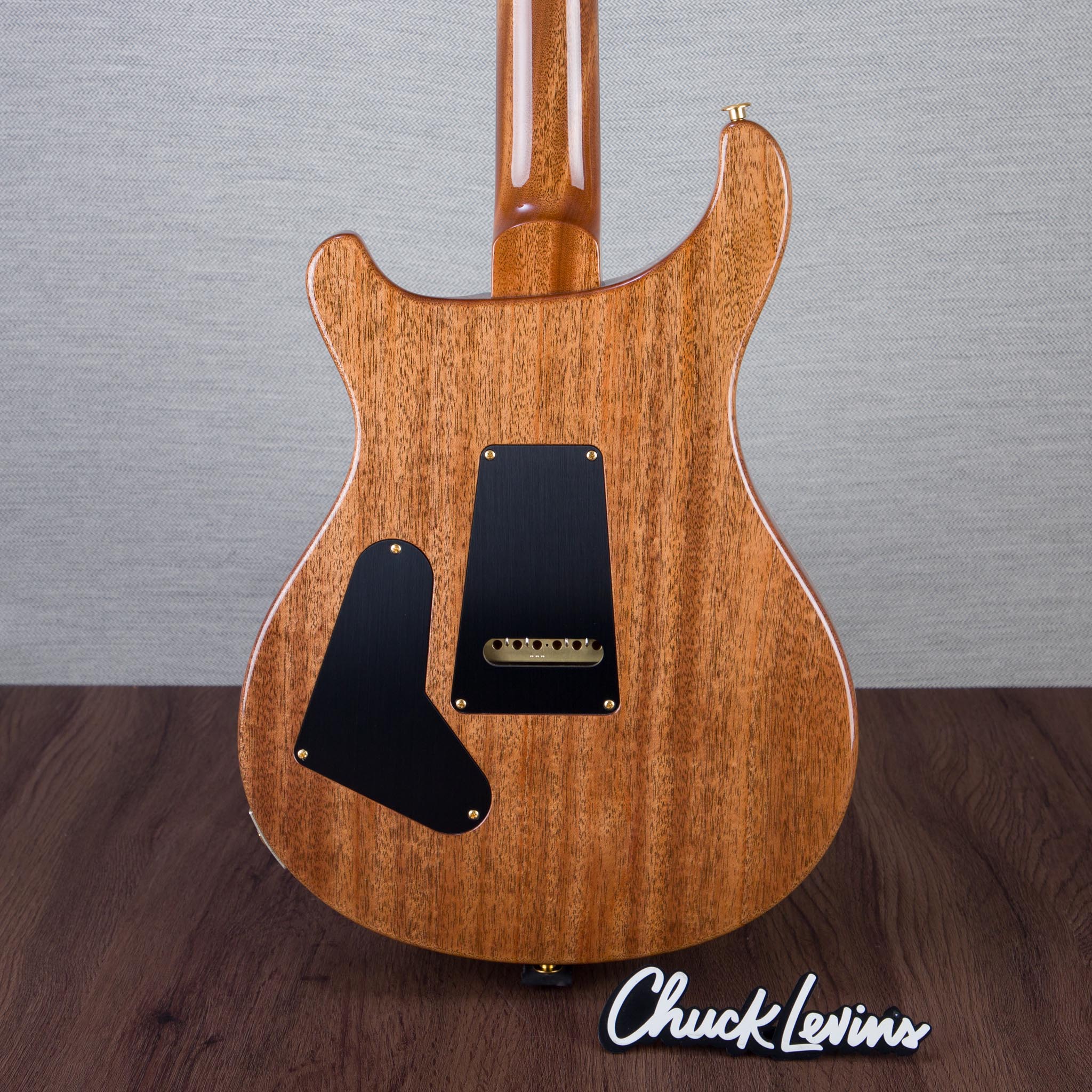 The 40th Anniversary Custom 24-08 Semi-Hollow Limited Edition starts with a “10-top” grade figured maple top, mahogany back and neck, and a ziricote fretboard. This wood combination, along with our thorough wood drying processes, creates a stable and resonant foundation. The addition of semi-hollow construction adds an even fuller organic quality to the tone, while the f-hole also adds an elegant visual touch.