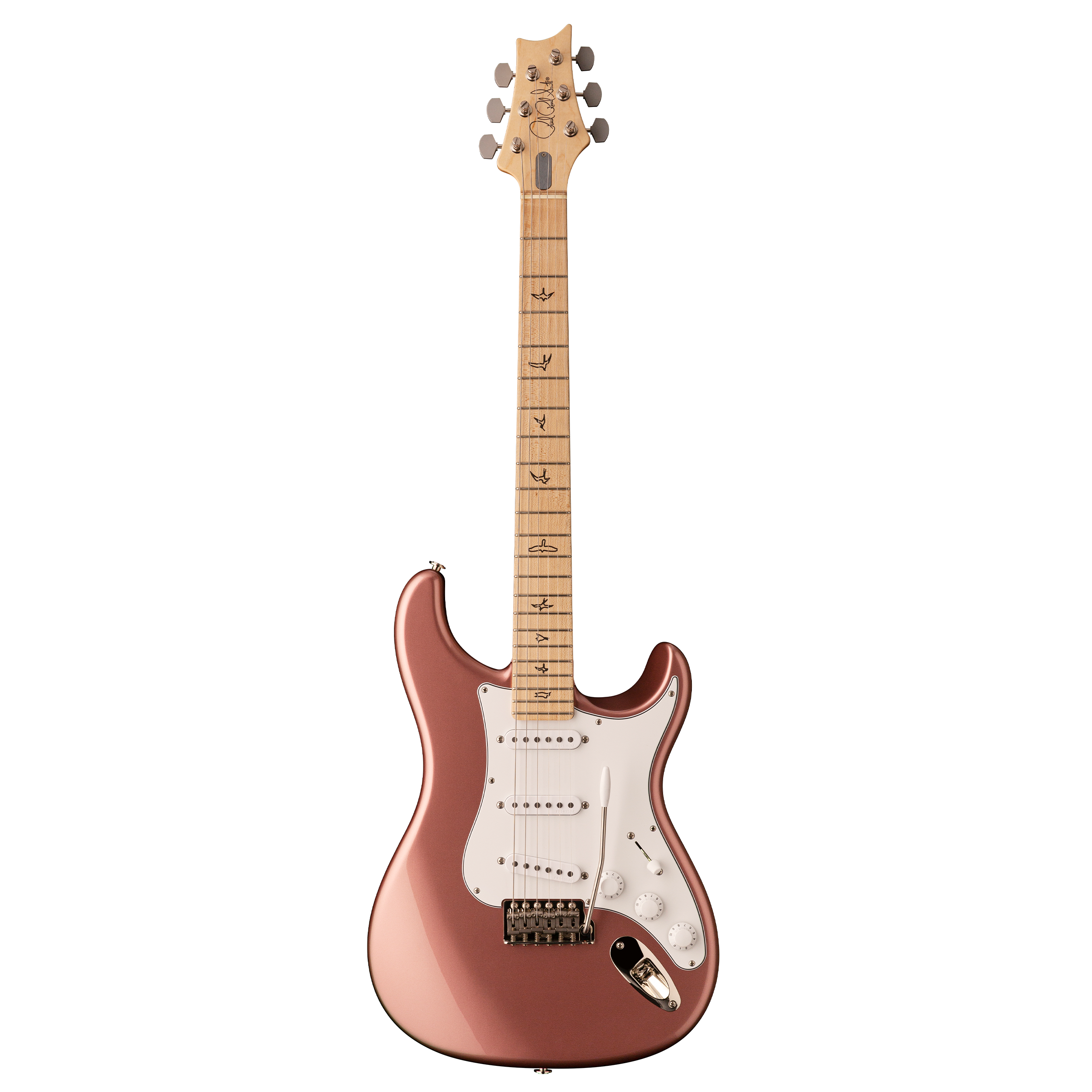 Some of the more distinctive specifications include, the headstock shape, tuners, bridge, pickups, and neck and fretboard options. The headstock shape is based on PRSËÇÖs trademark design, but inverted both to accommodate MayerËÇÖs playing style and also to keep a consistent length of string behind the nut, which makes staying in tune easier. The tuners are a traditional vintage-style, closed-back tuner, but with PRSËÇÖs locking design. The steel tremolo takes the patented PRS design and incorporates Gen III knife-edge screws. Setup flush to the body in the neutral position so that the tremolo bridge only goes down in pitch, the bridgeËÇÖs increased contact with the body allows the guitar itself to be acoustically louder, which in turn improves the signal to noise ratio of the single-coil pickups. The 635JM single-coil pickups are very round and full, with a musical high end that is never -"ice-picky-" or brash.