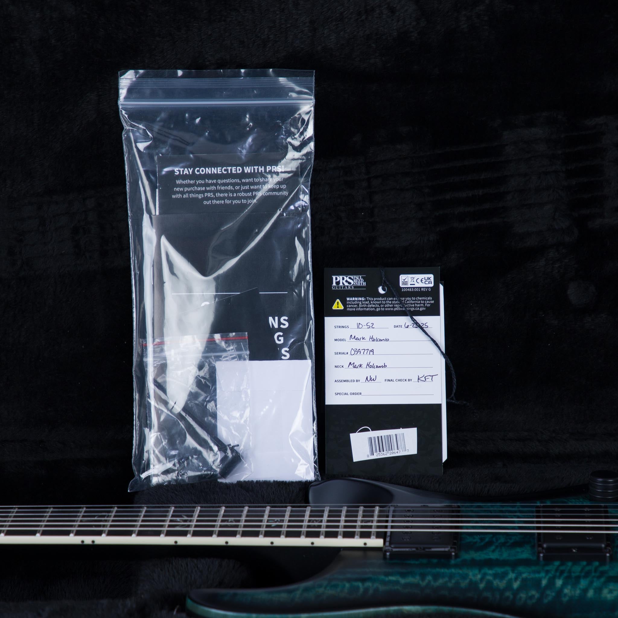 A standout in the PRS family, the Mark Holcomb model features a mango top, a 25.5” scale length maple neck, and an ebony fretboard with a 20” radius—crafted for speed and precision. Equipped with Holcomb’s signature Seymour Duncan Scarlet and Scourge pickups, this guitar delivers focused low-end punch and crystal-clear articulation, ensuring complex chord voicings, coil-splitting, and drop tunings remain defined and dynamic. The 5-way blade switch unlocks a range of tones, from dual humbuckers in position three to coil-split options in positions two and four.