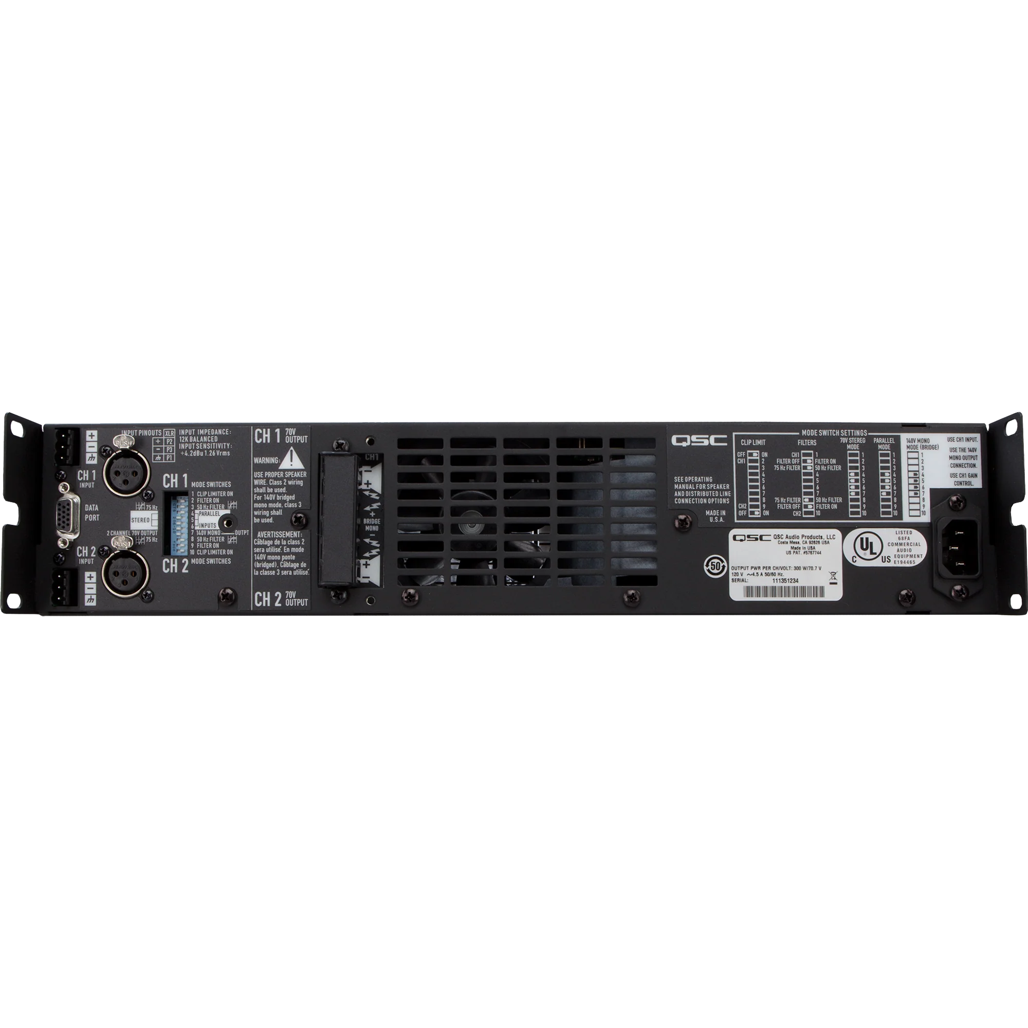 - Comprehensive front panel indicators including signal, clip, protect and QSC’s exclusive bridge-mono and parallel input LEDs •