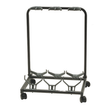 The GS-430 is a universal guitar stand designed for up to 3 guitars, with lower cradles designed to hold either acoustic or electric guitars firmly in place. Soft, rubberized cushioning protects guitars from scratches and will not mar finish. Folds down without tools to a convenient portable size for transport. Ideal for use on stage or studios, but also great for store displays, and trade shows. Equipped with casters for easy mobility.