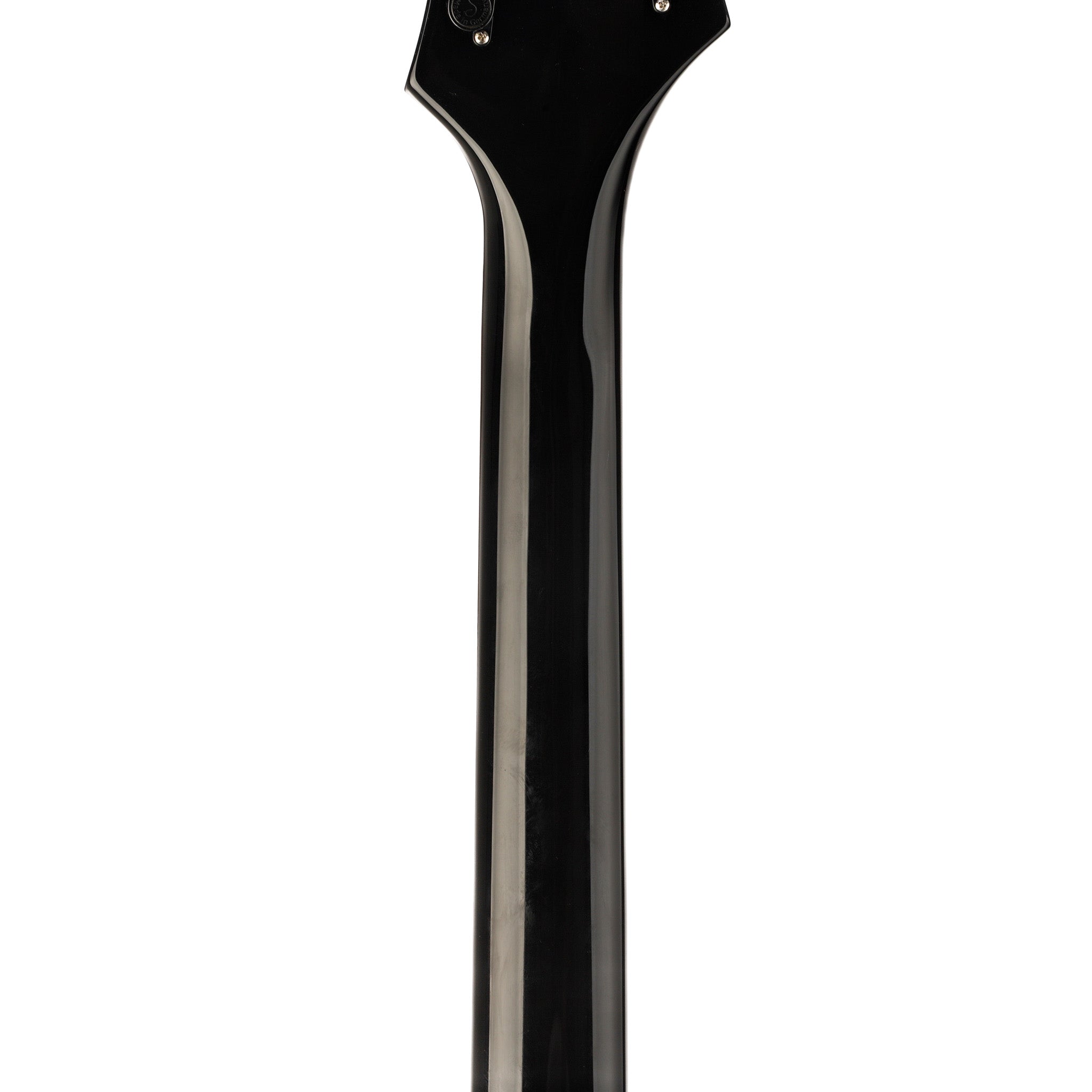 A further deviation from the original is the appearance of two Hot Toaster pickups, which produces full and crisp tones. As good as it sounds, its looks match the part. The Jetglo color, double cut, and fat bottom make this guitar's design completely unique.