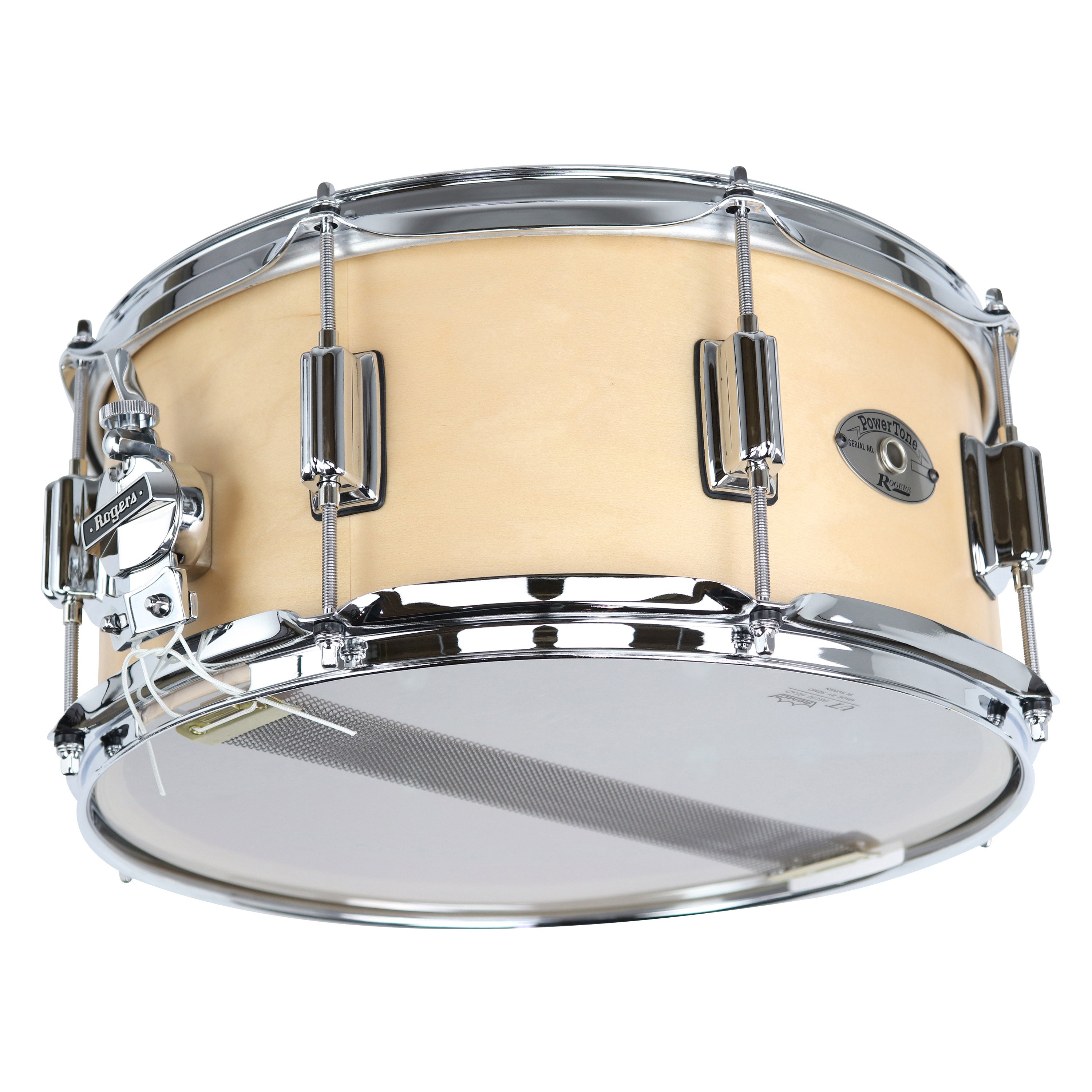 Rogers 26SN PowerTone Wood Shell 6.5x14 Snare Drum In Satin Natural With Beavertail Lug - The Drummer's Voice