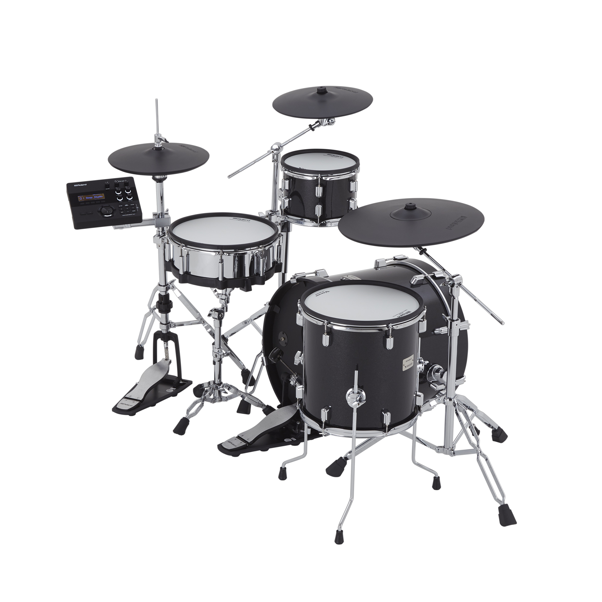 - Four-piece V-Drums Acoustic Design kit with full-size wood shells and upgraded double-braced chrome stands