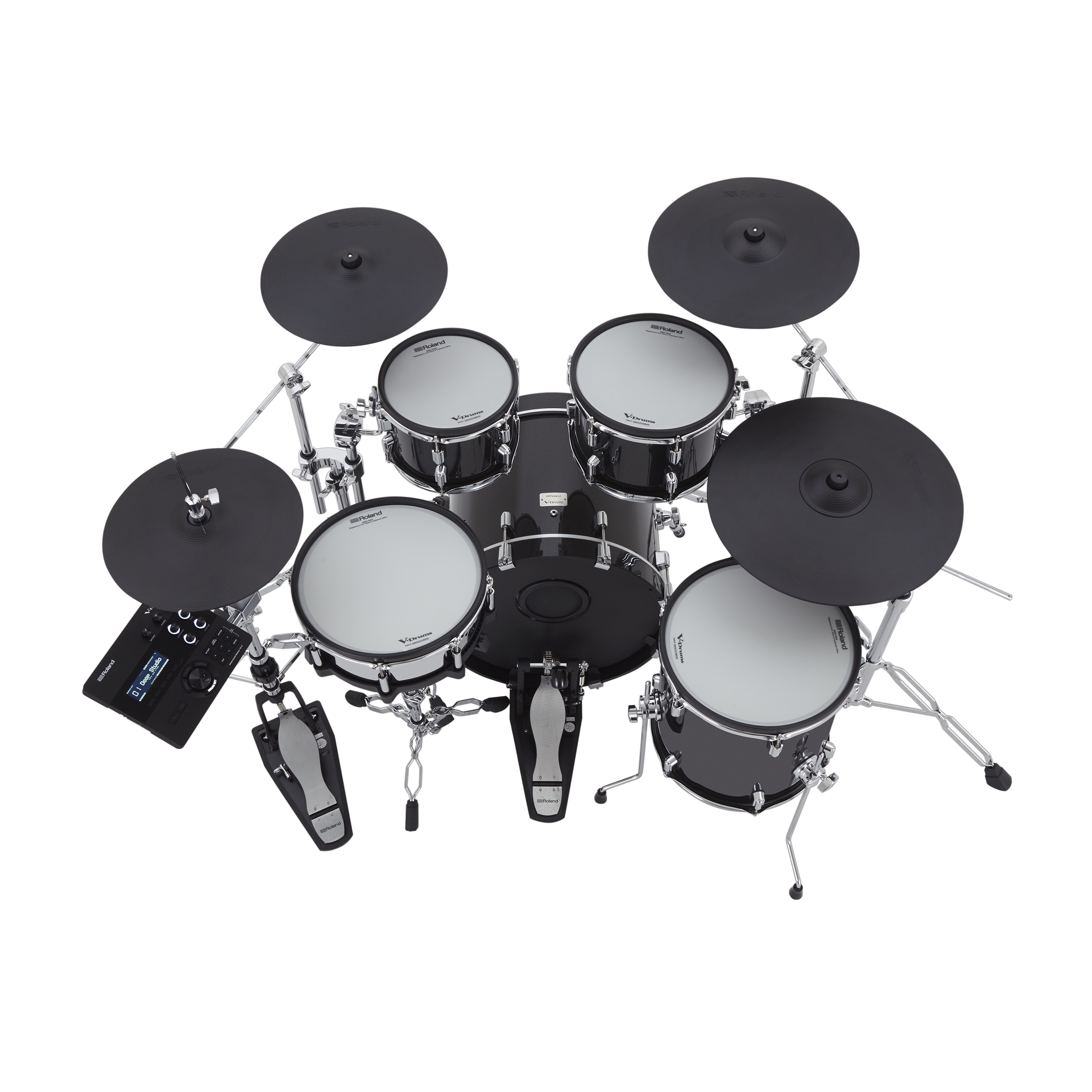 - Five-piece V-Drums Acoustic Design kit with full-size wood shells and upgraded double-braced chrome stands