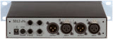 The microphone input is balanced but not floating, being a variant of an instrumentation amplifier using a Transformer-Like-Amplifier (T.L.A.) configuration with a toroidal Common Mode Rejection Low Pass Filter that excludes frequencies above 150 kHz. The T.L.A. is followed by an actual input transformer permitting a full +25 dBu input signal to be handled at unity gain without an input pad over the whole audio spectrum. This combines the advantages of both an "Electronically Balanced" and true transformer input. When the Phantom voltage is switched off, this input serves as a very high-quality line input with an impedance of 10K Ohms.