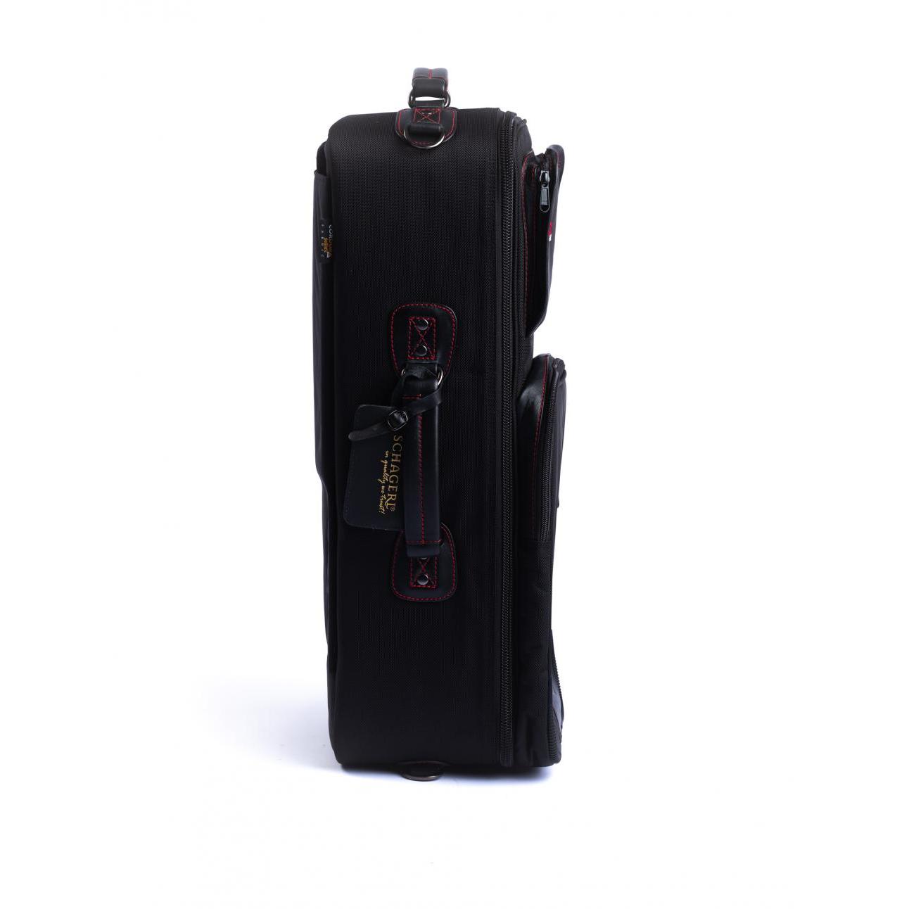 The Schagerl / Gard Elite 3-Trumpet Gig bag is a premium accessory designed to accommodate three trumpets, whether equipped with perinet or rotary valves. The bag's innovative hybrid construction incorporates inserted polymer reinforcement, providing unparalleled protection and durability. Handcrafted with meticulous attention to detail, it is made from 1680D fabric material and features elegant accents and handles made from the finest black Nappa leather. With two separate outer pockets, a Mid Bag Suspension System, and a convenient side opening for easy loading, this gig bag offers the ideal blend of style and functionality for the discerning trumpeter on the go.