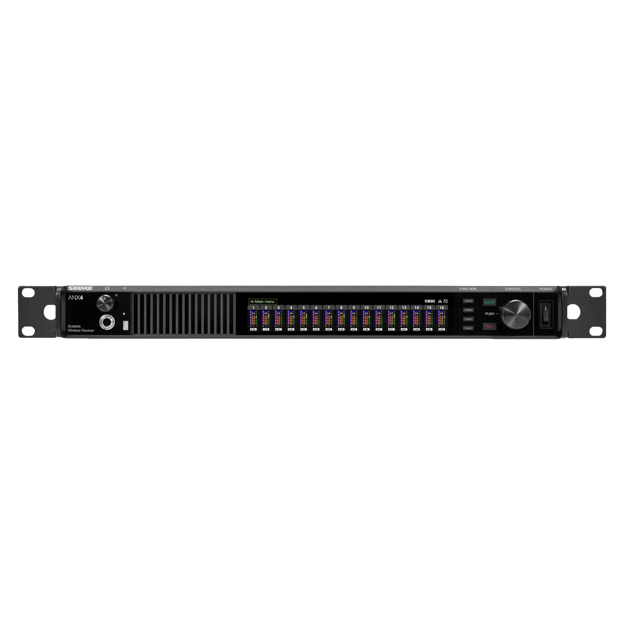 The ultimate high-tier, high channel count wireless receiver, Shure ANX4 receives up to 16 channels of Shure Axient Digital or 24 channels of Shure ULX-D wireless audio in a single rack space. Delivering maximum flexibility, ANX4 does not ship preconfigured with active wireless channels, allowing you the opportunity to purchase channels in single- and four-channel increments and activate the exact number of channels you need.