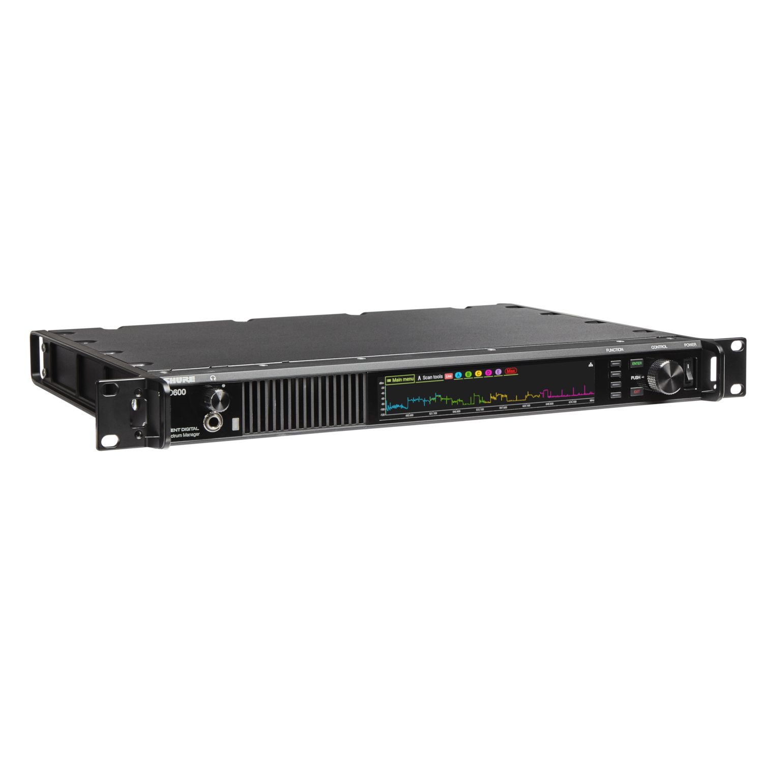The Shure Axient Digital AD600 Digital Spectrum Manager is a powerful, next-generation tool for planning and managing frequency coordination in professional audio applications. With a large, full-color 6.6-inch front panel screen, the AD600 makes viewing easy while real-time scanning and monitoring of RF activities keeps live information available when you need it most.