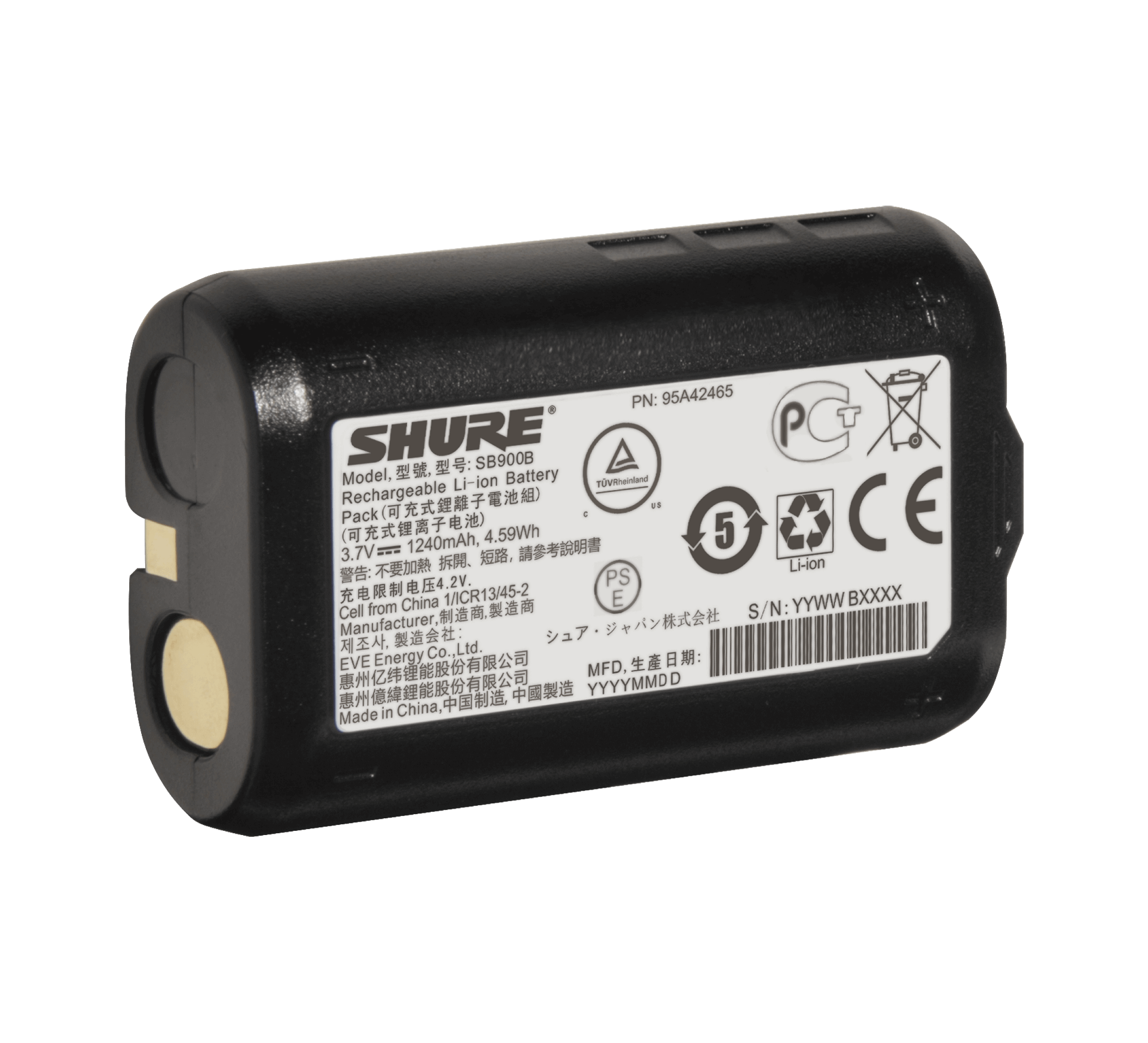 Keep Your Shure Wireless Systems Powered And Ready Wherever You Go With The Shure SB900B Rechargeable Lithium-Ion Battery