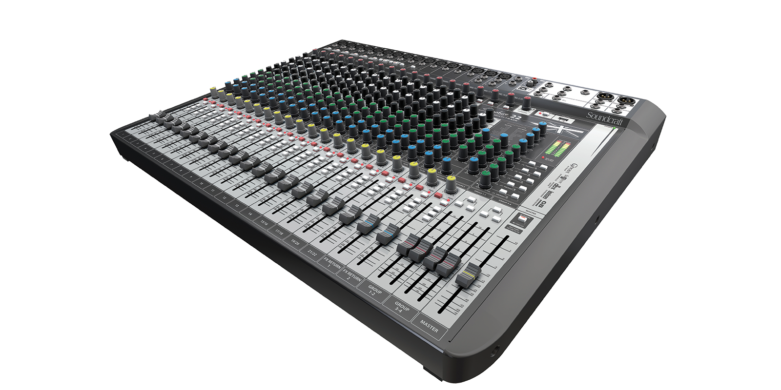 - Renowned Soundcraft® Sapphyre British EQ with sweepable mid-bands per channel