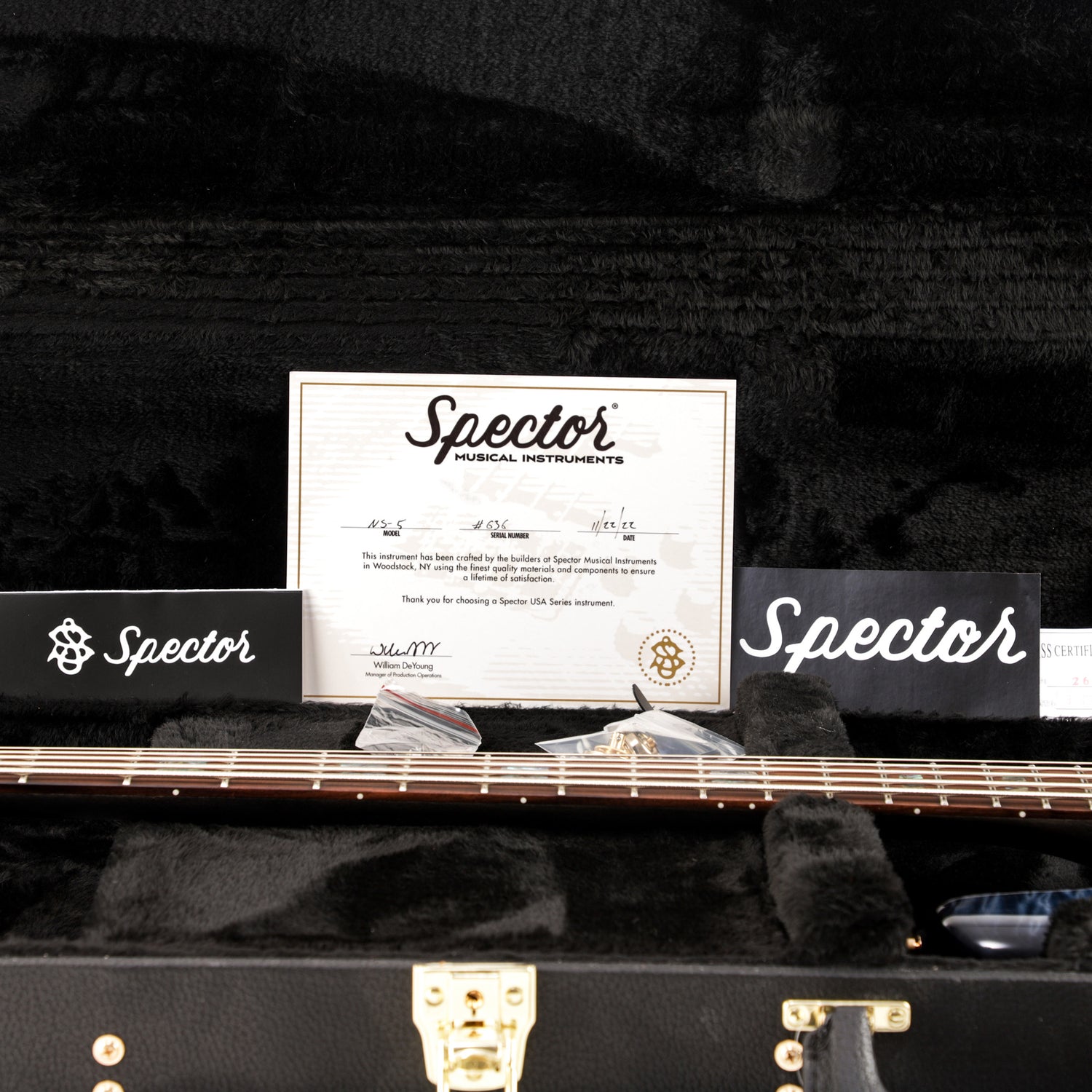 This Spector NS instrument was individually built by a small team of builders in Woodstock, NY from the finest source materials and hand-selected tone woods. The 3-piece neck is carved from tempered North American Maple paired with an Ebony fingerboard. Each instrument is outfitted with custom, professional-grade hardware including Spector's hi-mass locking bridge, Dunlop strap locks, and Gotoh tuners. The sound and feel of a true USA Spector instrument is second-to-none.