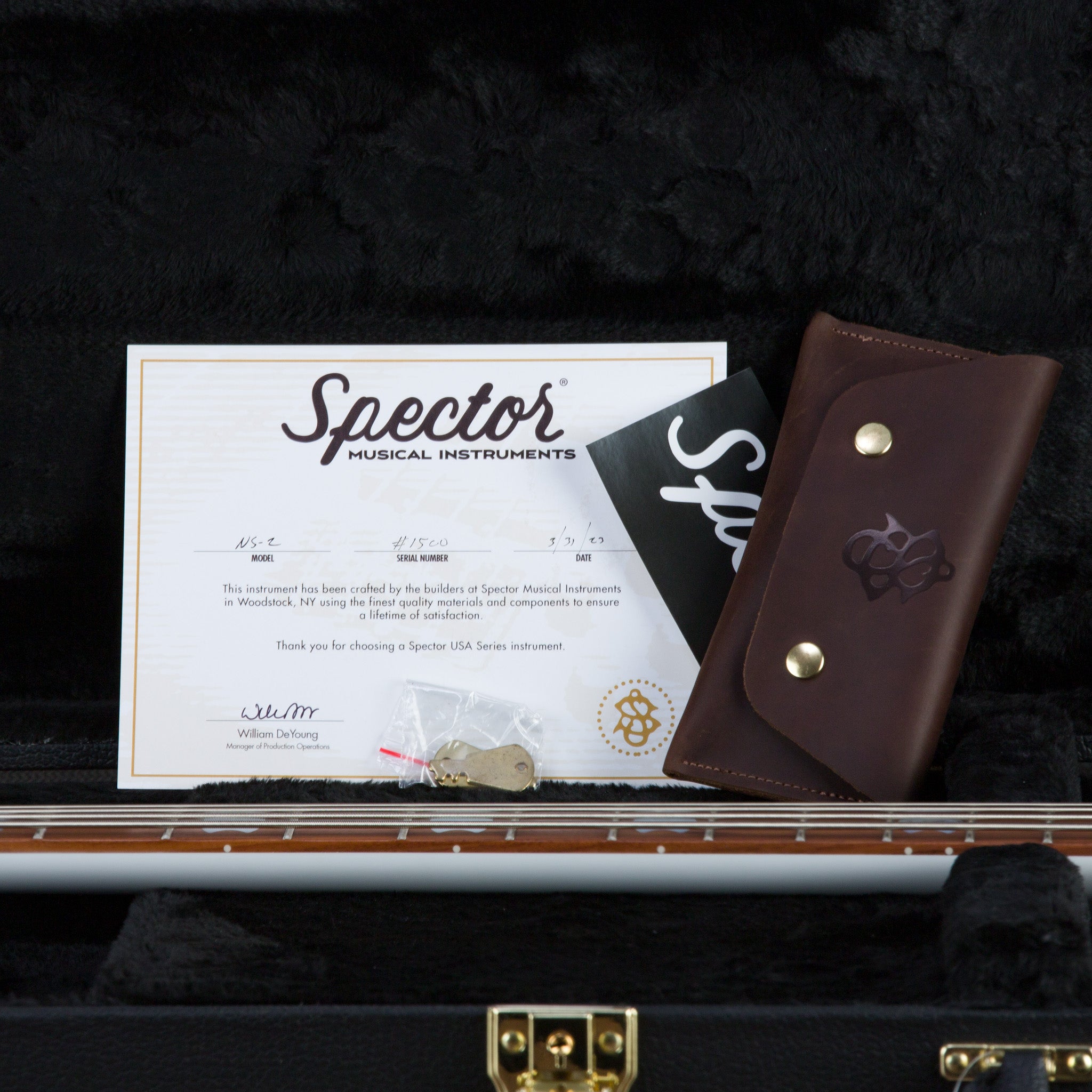 Spector NS instruments are individually built by a small team of builders in Woodstock, NY from the finest source materials, including hand-selected tone woods from the most fertile regions of the world. Each 3-piece neck is carved from tempered North American Maple and paired with a Pau Ferro fingerboard. Every instrument is outfitted with custom, professional-grade hardware including Spector's hi-mass locking bridge, Dunlop strap locks, and Gotoh tuners. The sound and feel of a true USA Spector instrument is second-to-none.