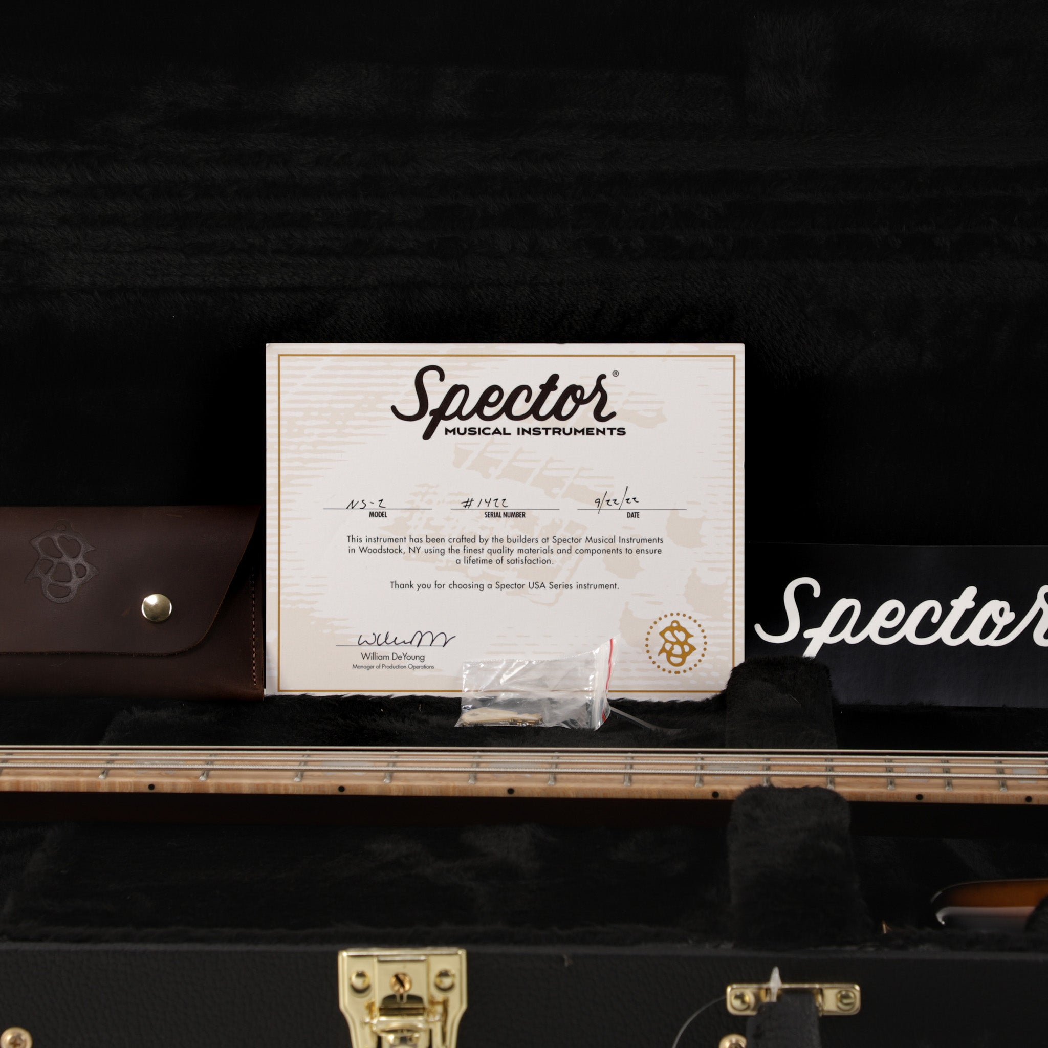 Spector NS instruments are individually built by a small team of builders in Woodstock, NY from the finest source materials, including hand-selected tone woods from the most fertile regions of the world. The 3-piece neck is carved from tempered North American Maple and is paired with a fingerboard of Birdseye Maple. Each instrument is outfitted with custom, professional-grade hardware including Spector's hi-mass locking bridge, Dunlop strap locks, and Gotoh tuners. The sound and feel of a true USA Spector instrument is second-to-none.
