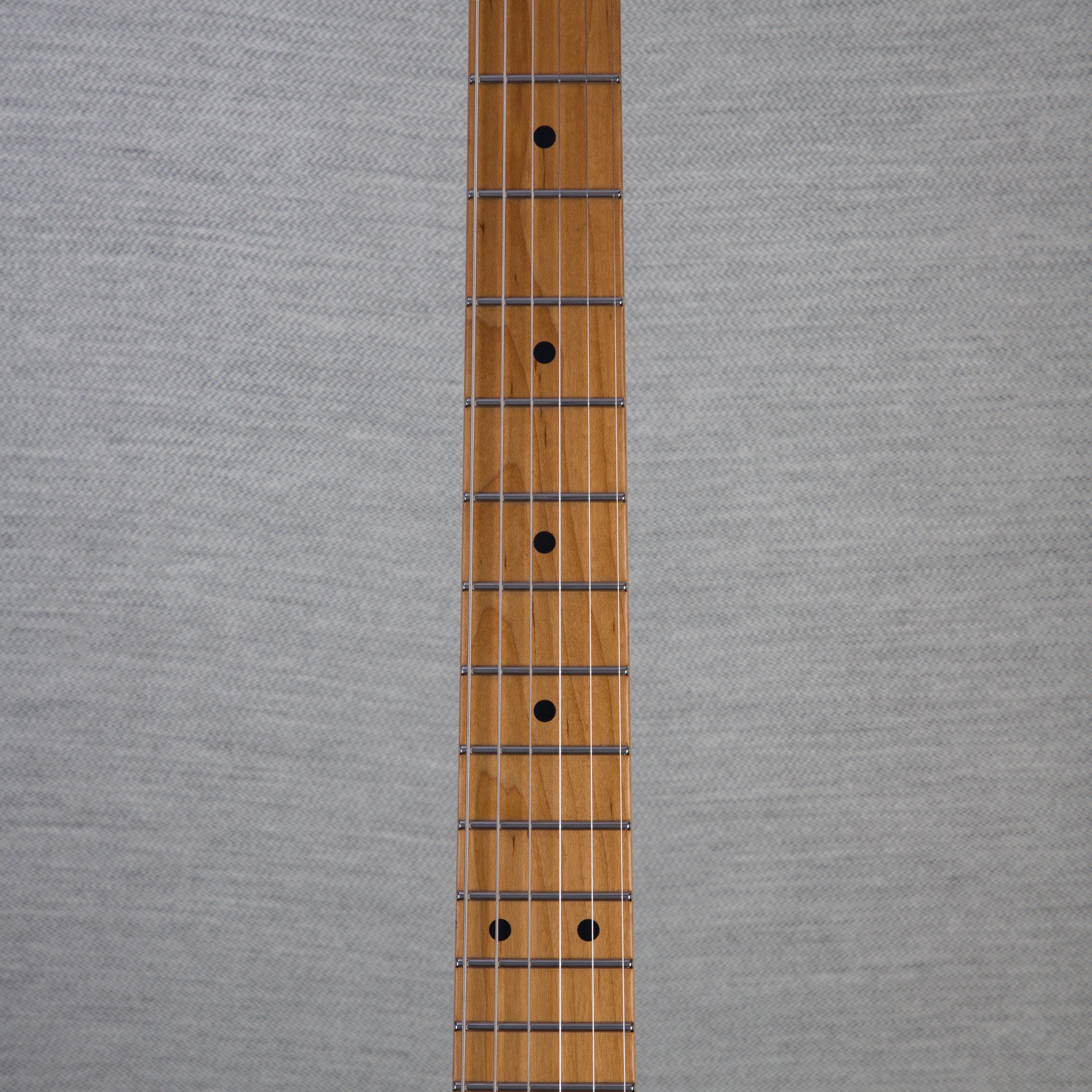 Andy’s Signature Series Modern T features a torched swamp ash body, roasted maple neck, and jumbo stainless steel frets. It’s available in Andy’s signature colors, Iron Red, War Black, and Whiskey Barrel in either HH or SS pickup configurations.