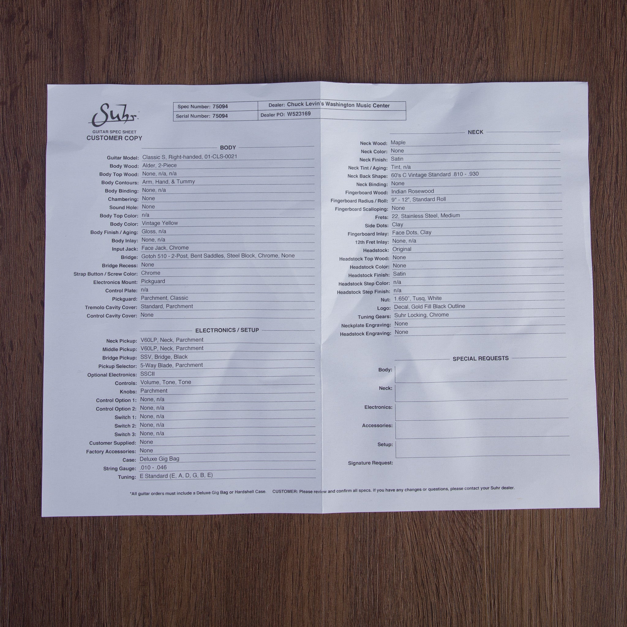 Suhr Classic S HSS Electric Guitar,Rosewood Fingerboard - Vintage Yellow - #75094