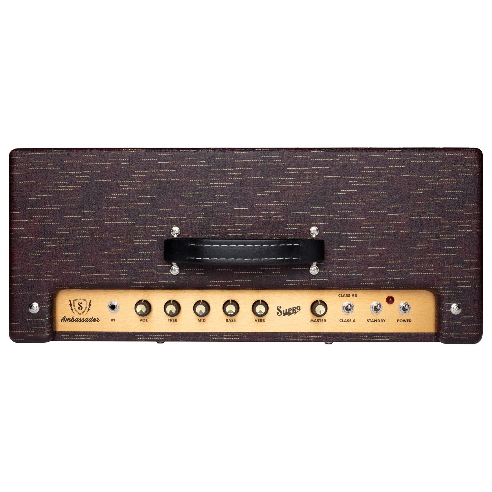 The Ambassador features a switchable Class A (35 Watt) / Class AB (50 Watt) output stage loaded with EHX 5881/6L6WGC power tubes to deliver responsive articulation and an exceptionally low noise floor even at full volume. Class A mode delivers the more traditional, cathode-biased Supro sound with a bold midrange, while Class AB delivers a grid-biased California sound with a more scooped mid-range, tighter bass and faster transient response. Perfect for players looking for loud, colorful cleans and a hefty bottom end, the Supro Ambassador Custom offers iconic tone both onstage and in-studio.