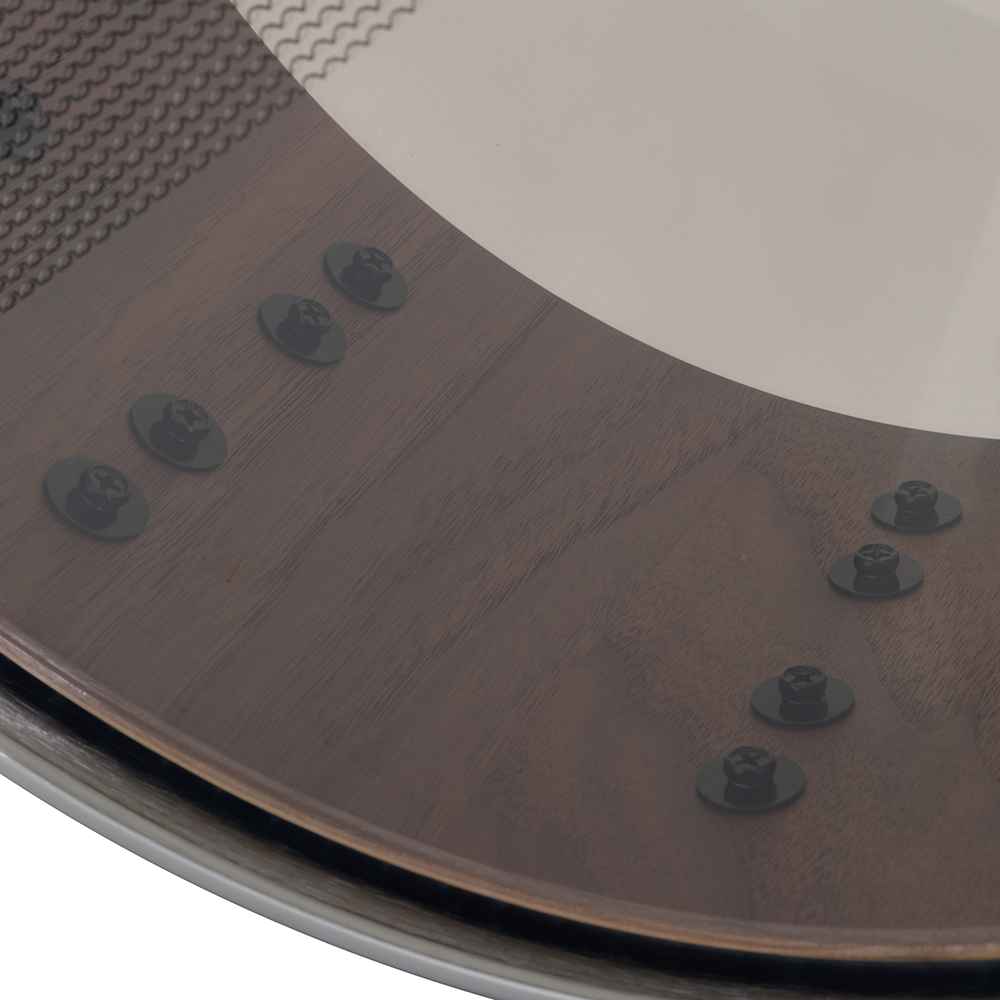 Made of 6mm, 4ply Birch + 2 inner ply American Black Walnut. The hybrid shell exhibits the focused attack of birch paired with the firm and warm of Walnut. This sound is not only punchy but sweet and mellow. When you beat the drums once, the excellent tone surrounds you. The Walnut/Birch hybrid shell will make your drum life state of the art.