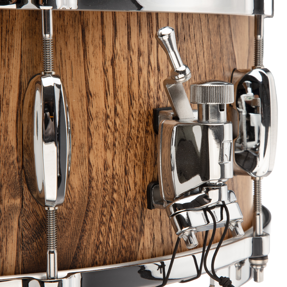Walnut has long been favored by furniture makers for both its beauty and durability. As a drum shell material, Walnut's naturally EQ'ed tone has been praised by the drumming community for both the stage and the studio. The STAR Walnut shells project booming low end with enough cut to be heard through any mix. STAR snare drums have 3 air holes around the shell, instead of just 1 like on the tom-toms, floor toms, and bass drums. These extra air holes lend a brighter, dryer sound to the snare drums and result in even projection in all directions.