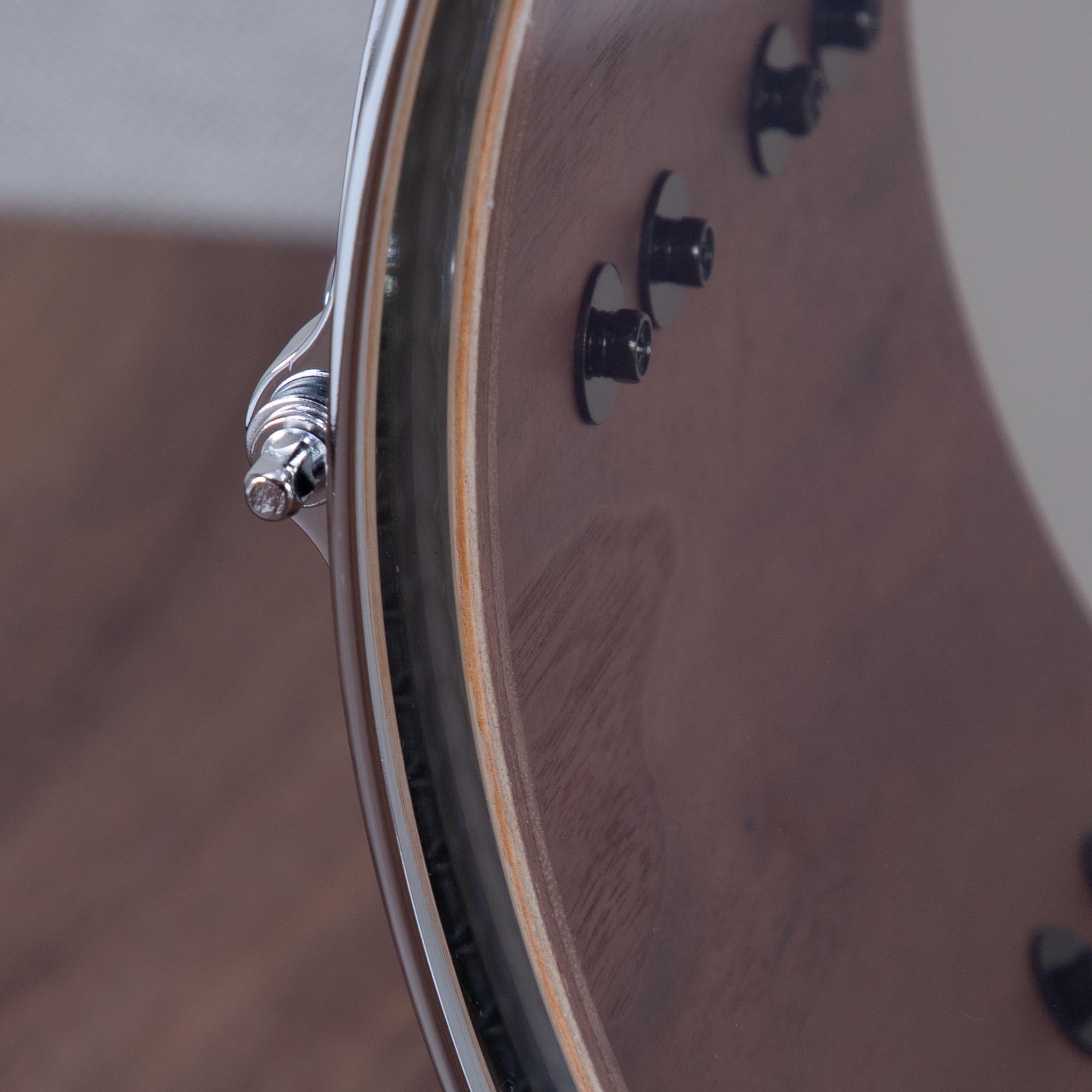 The Walnut/Birch hybrid shell will make drum life state of the art. The hybrid shell exhibits the focused attack of birch paired with the firmness and warmth of walnut. This sound is not only punchy but sweet and mellow. When the drum is played, an excellent tone surrounds the performer.