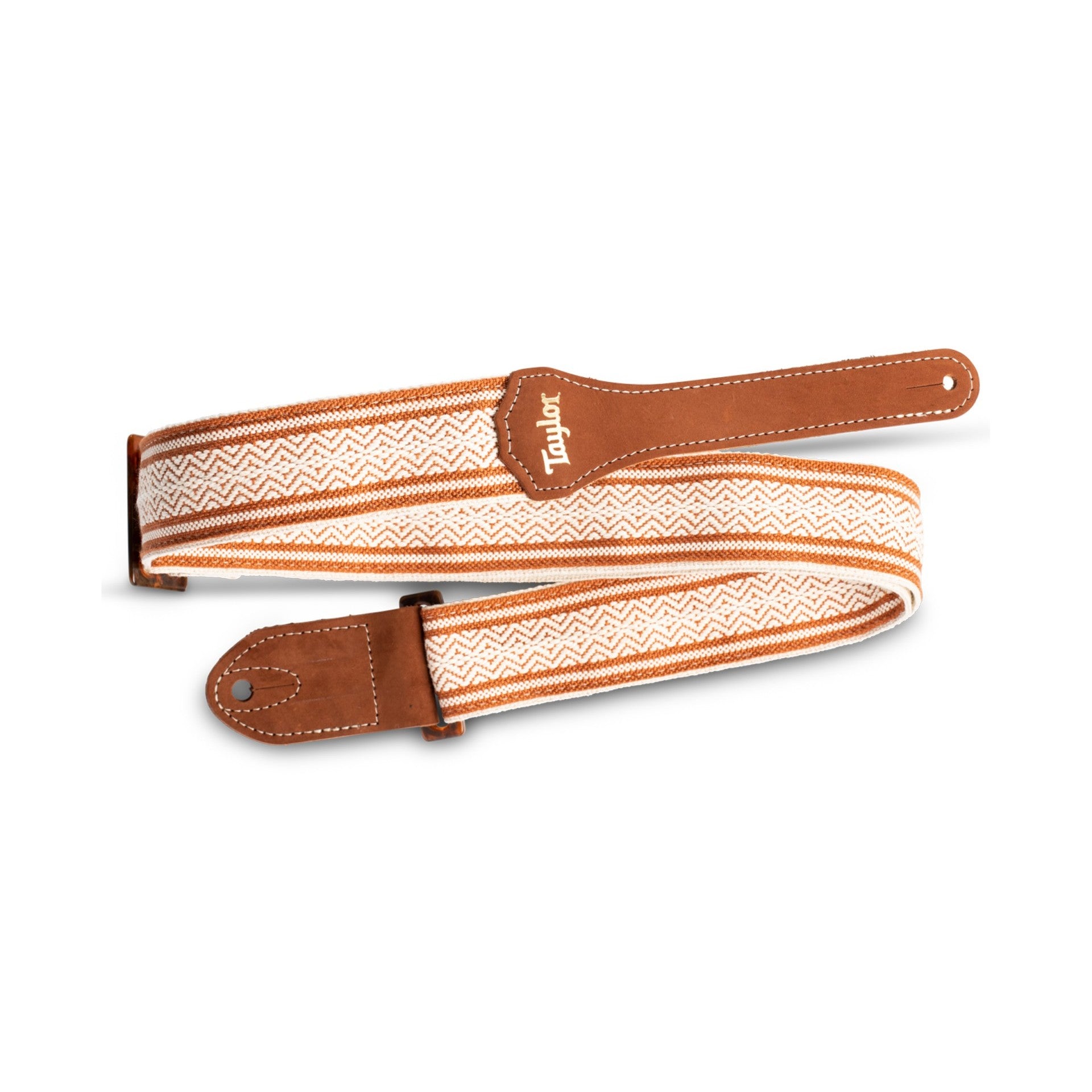 Comfort and Support with an Earthy, Organic Look - The Taylor 2-Inch Academy Jacquard Leather Guitar Strap - White/Brown