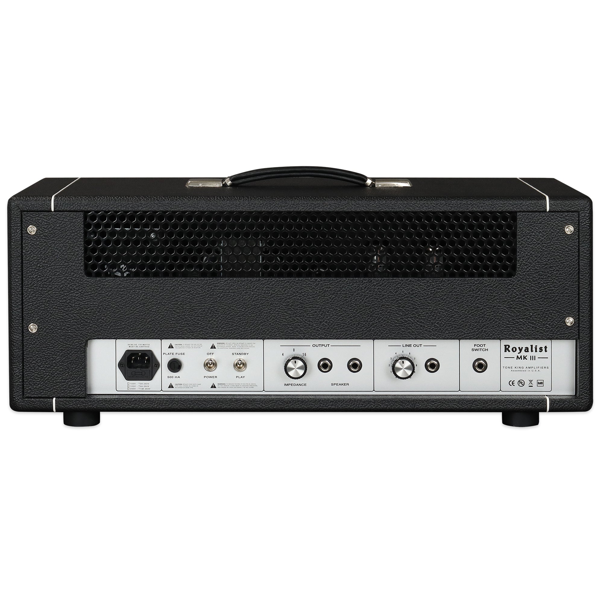 The Royalist MKIII features an all-tube signal path with three 12AX7A preamp tubes and two EL34 power tubes. In addition to the output tubes, a 5AR4 rectifier tube delivers the authentic “sag” feel and response which is signature of classic British amps.