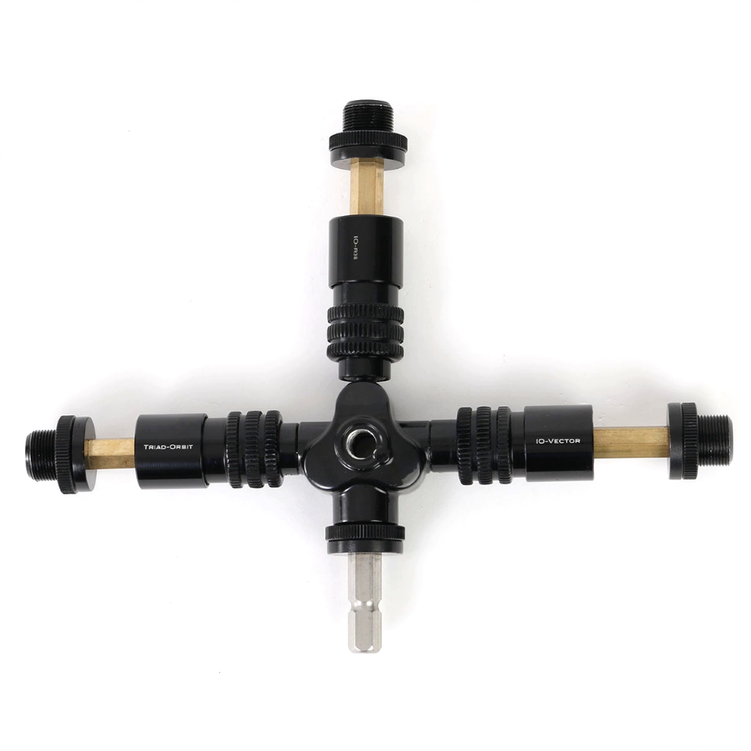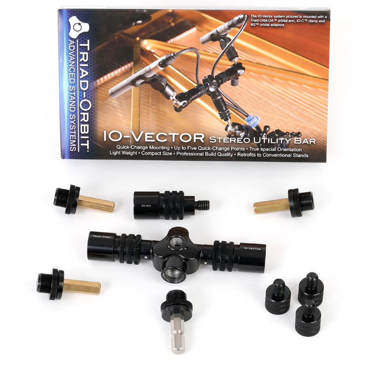 The new IO-Vector takes the traditional stereo bar to a new dimension–literally. IO-Vector provides four points of connectivity for 3-D positioning of creative, medical and industrial devices. IO-Vector is bundled with IO-R38 quick-change coupler. Integrating Micro adapters and IO-A telescoping boom arms greatly expands the capabilities of IO-Vector including innovative left/right stereo imaging, Decca trees and 3D video. Add Micro M2™ orbital adapters to an IO‑Vector to expand the positioning options for microphones and cameras to enhance your Triad‑Orbit stand system’s range of motion and positioning.