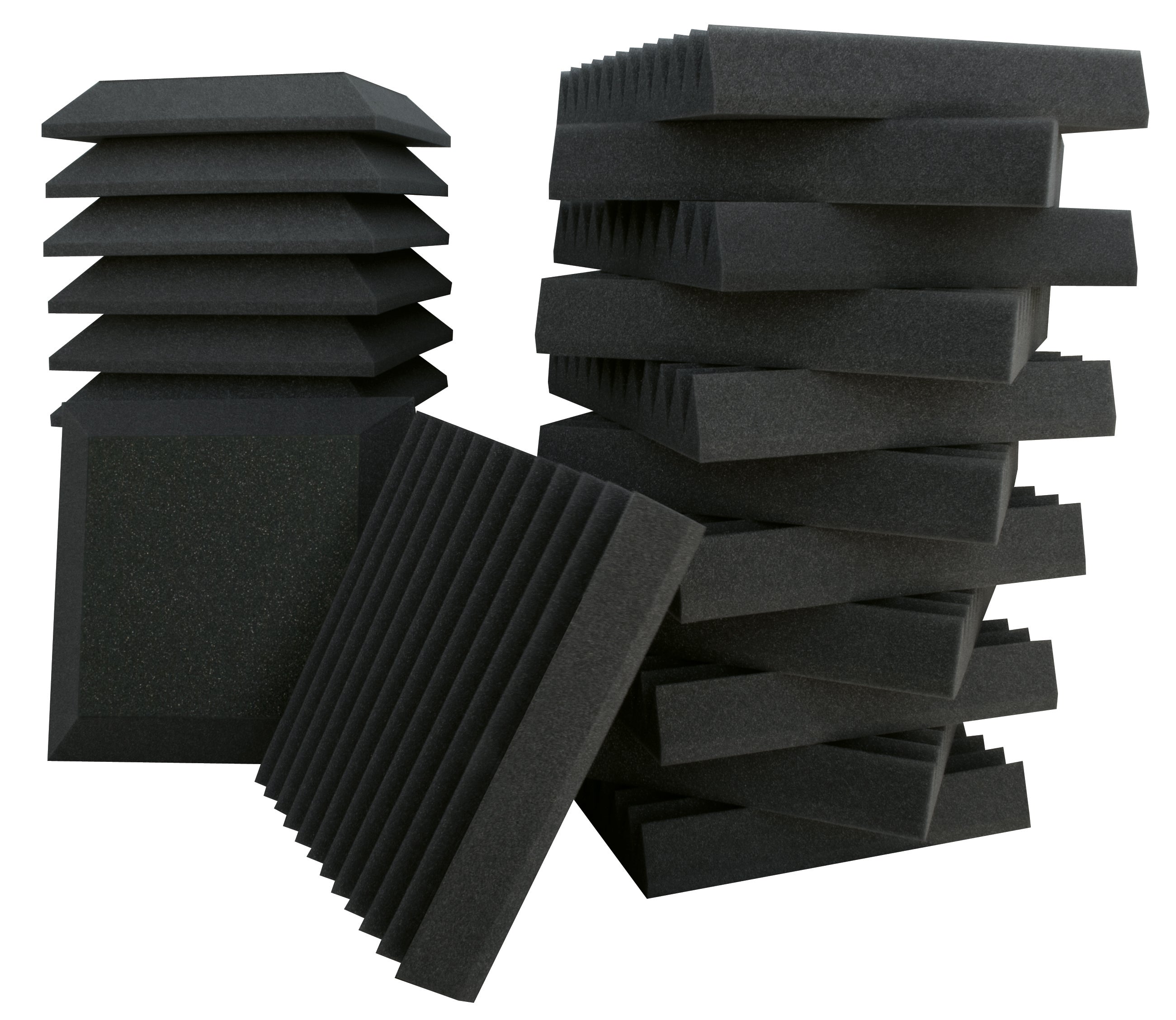 The Ultimate Support Studio Bundle II provides 24-square feet of professional acoustic coverage of 12" x 12" square panels that are two inches thick! What's more, this kit delivers both form and fashion by giving you a mix of styles from which to design your space. You get 12 wedge-style panels and 12 bevel-style panels!