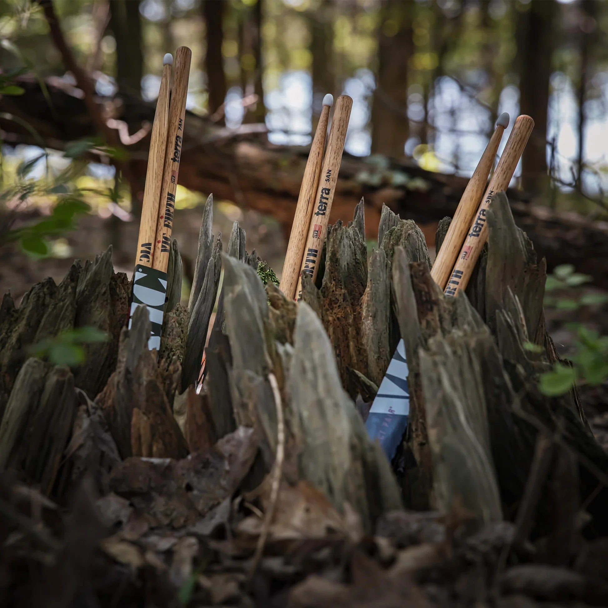 The Vic Firth Terra™ Series drumsticks celebrate the natural beauty our earth gifts us in each drumstick we make. Using a proprietary staining process, the unique and beautiful grains are exposed so that no two pairs are alike. Crafted from premium USA Hickory in Newport, ME, the Terra™ series pays homage to the material that drummers around the world rely on to make magic behind their kit.
