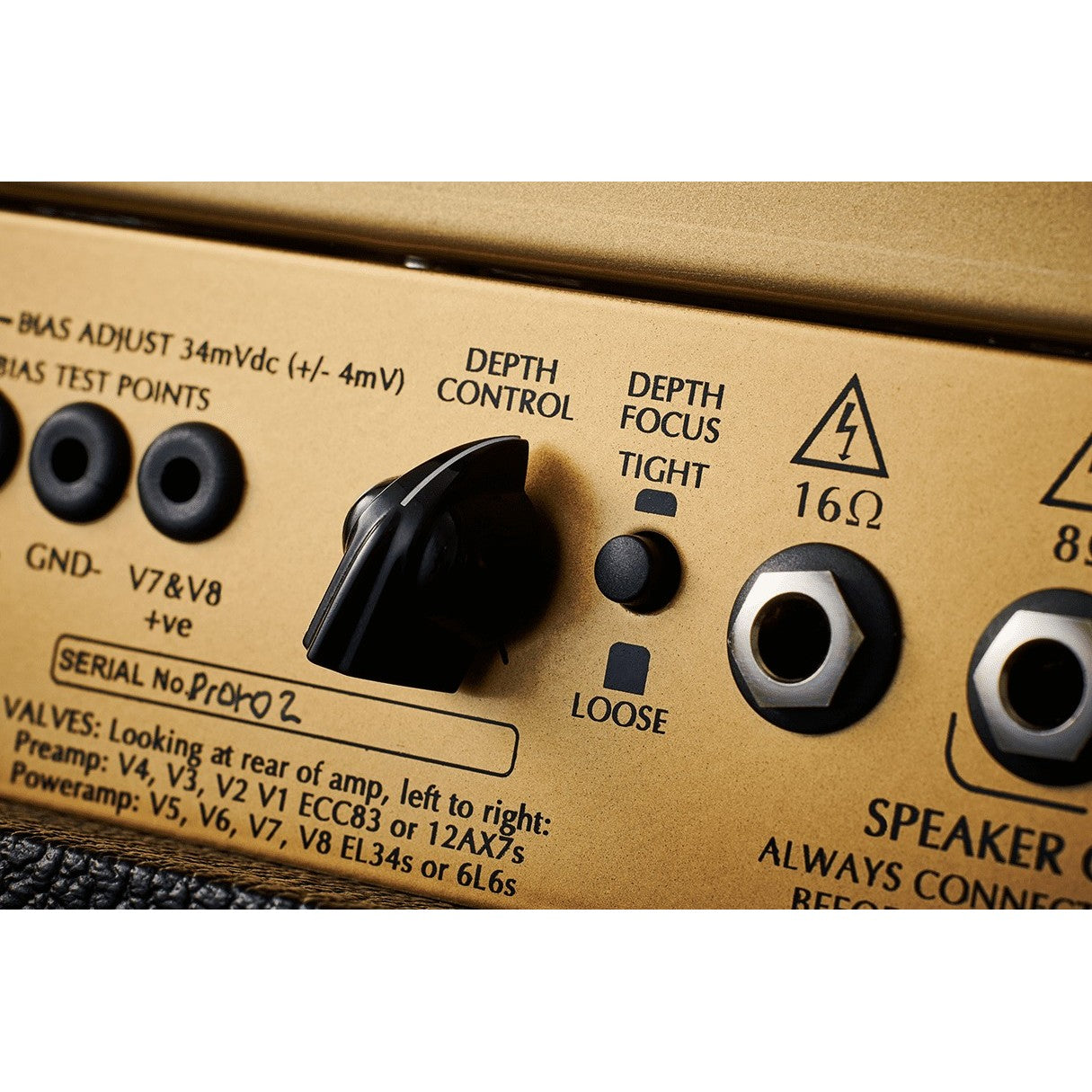 Located on the front panel, this switch changes the brightness of the presence control. Position two will sound slightly brighter as it reduces negative feedback in the higher frequencies.