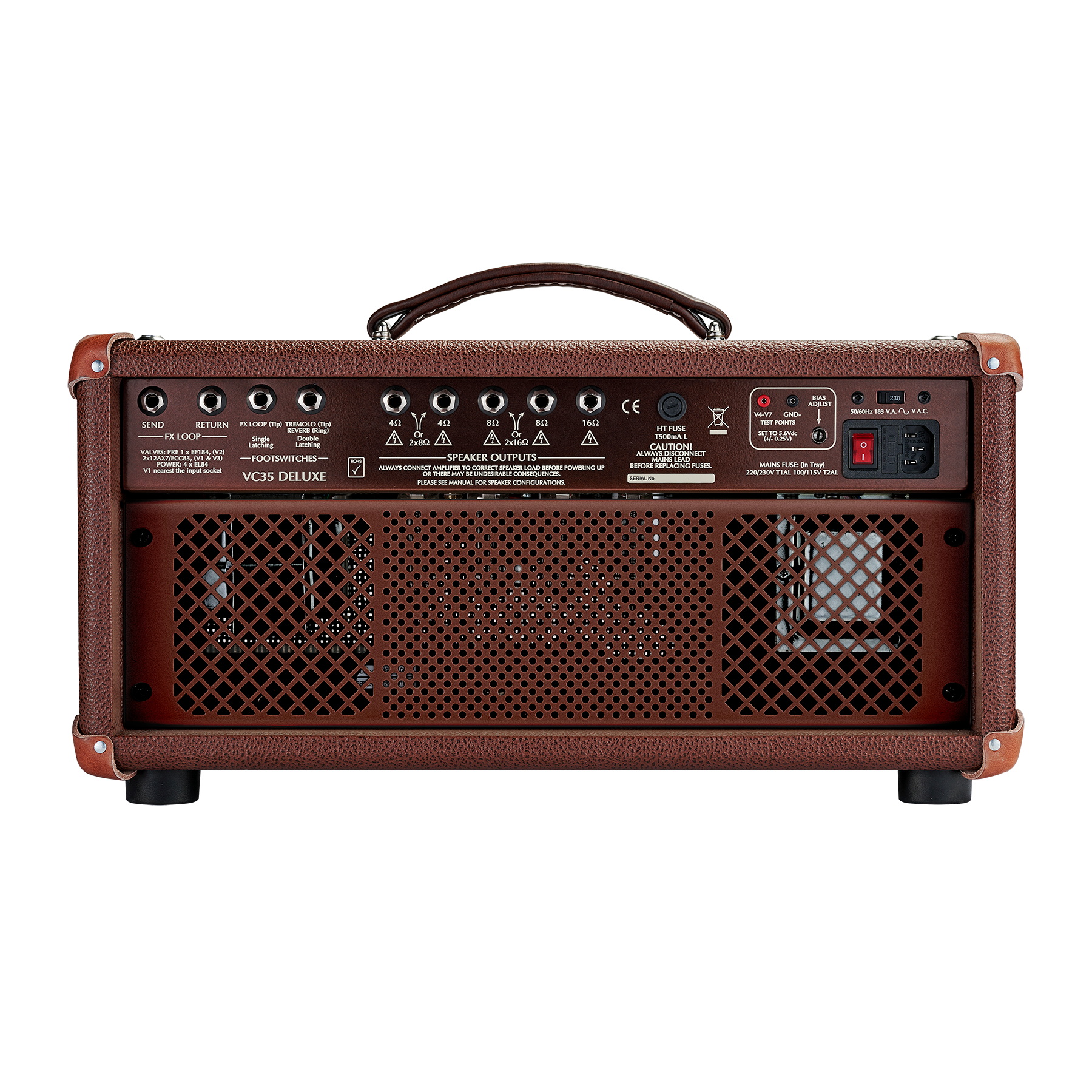 The VC35 uses (foot switchable) valve-driven spring reverb, considered to be a sonic step up from digital reverb for many. Dreamy 'verb here we come! If you're running the VC35 gainy, your time-based effects - reverb and delay - will stay cleaner sounding with the foot switchable Series Effects Loop. The tremolo, also foot-switchable, lets you achieve wonderfully evocative pulses from slow and throbbing to fast and staccato rhythms. The VC35 has high power and low power modes. 35 watts in full power is great for punch and headroom; 12 watts low power gives less volume, more compression and a different harmonic and dynamic response, albeit still loud enough for gigs! When it's time to change your EL84 output valves, you can externally test and adjust the bias for the replacement set of valves quickly and safely. VC35 runs cathode biased in low-power mode, and a mix of fixed and cathode bias in high power mode.