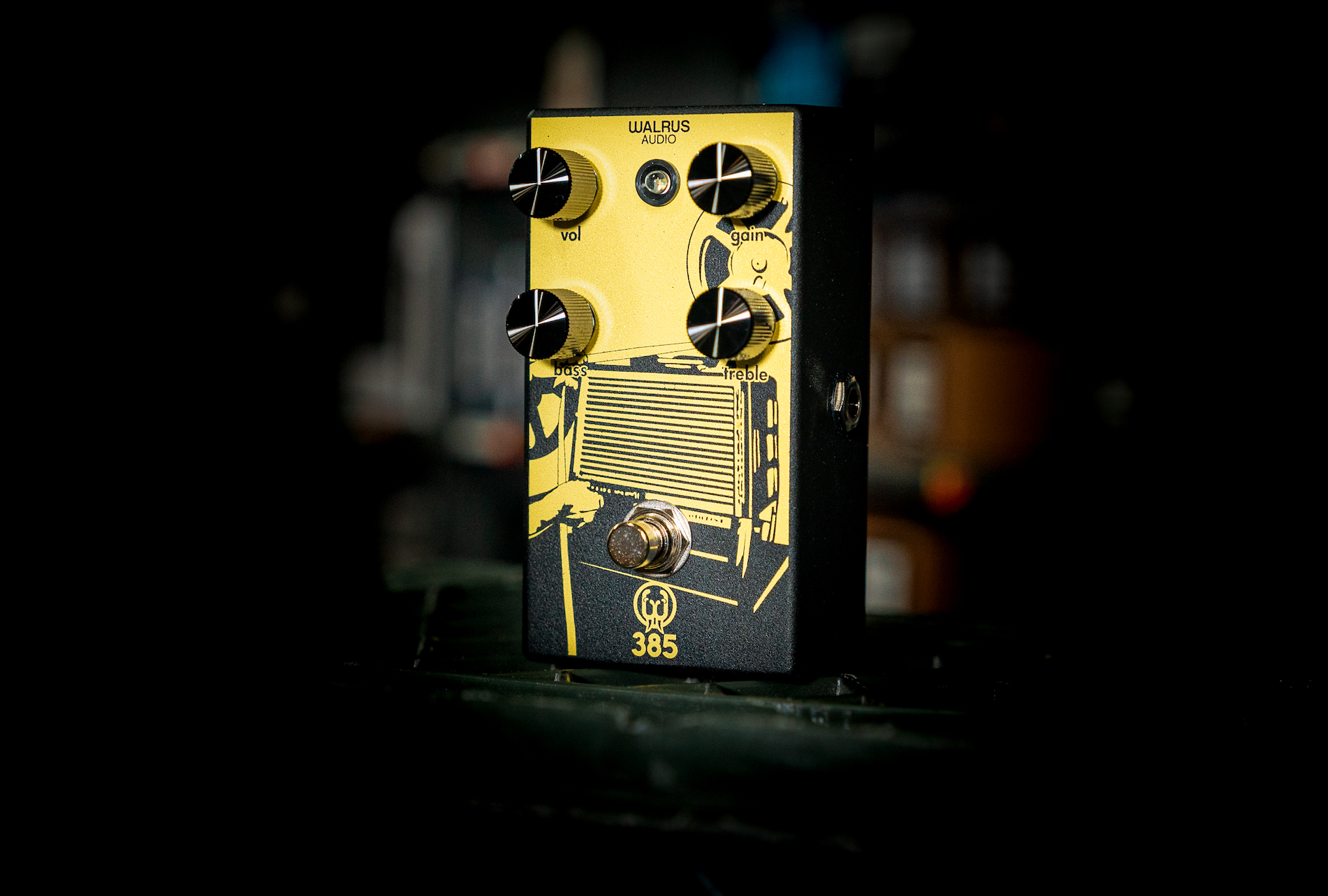 This was the sound and feel Walrus needed to shoot for in an amp-like pedal. The 385 was developed to have the same simple but effective tone control as it’s grandfather. The amp has this as well but bass and treble are stacked behind the single tone knob. With our design breaking them up, we allow for a much wider array of tones to be achieved. The user is able to boost and cut bass and treble, allowing them to be creative with mid-frequency scoops and bumps.