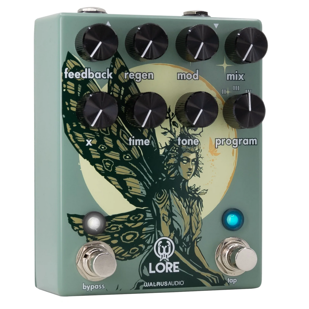 Once upon a time, in a fairy tale world, there stood a hidden forest. On the eve of every full moon, magical and delicate sounds of light were heard bouncing and reverberating through the trees. These sounds carry artifacts of notes moving backward and stretching through time. They are referred to as... Lore. Create the soundtrack to your storybook adventure with the Lore Reverse Soundscape Generator. Made up of five different programs, each utilizes different combinations of delay and reverb that feed into each other for time-warping ambient creations. Featuring two DSP chips running in series, each with their own analog feedback path, the Lore takes you on an adventurous journey rich with themes of reversing, time-stretching, pitch-shifting, and vast ambiance.- Five custom algorithms each using combinations of reverse delay and reverbs engines