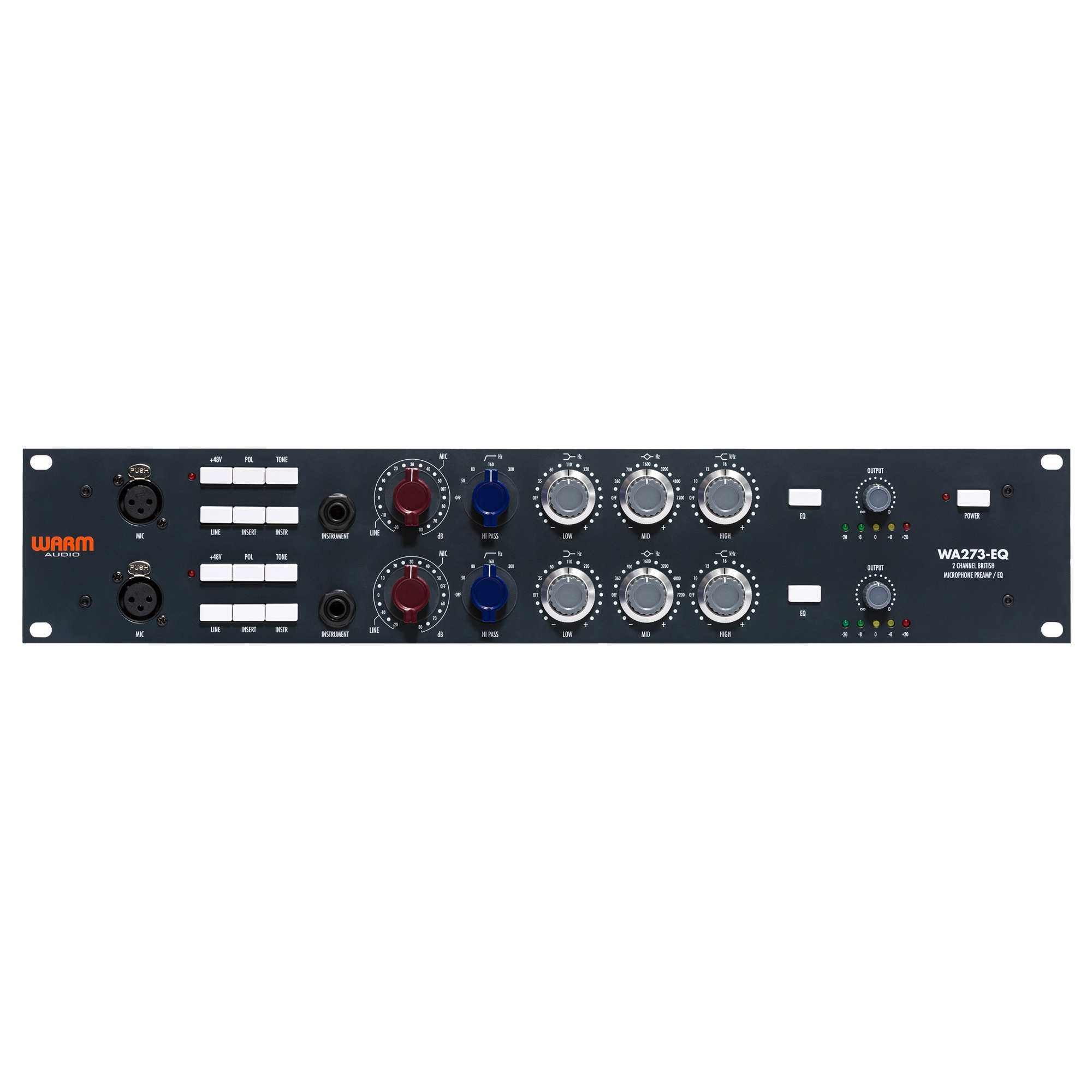 The WA273-EQ is a “Desert Island” boutique preamp, but it can also be classified as a studio and live work-horse. Classic '73-style preamps are known for being versatile tools that work with all kinds of microphones from Condenser, to Dynamic, to Ribbon. The WA273-EQ equally shines on all types of microphones and sources including; vocals, acoustic/electric guitars, bass, drums, percussion, orchestras, keyboards, and even as a tone shaping tool to run partial or complete mixes through. With 80dB of gain and a fully discrete Carnhill Transformer balanced signal path, there’s no recording, mixing or engineering task that the WA273-EQ can’t handle.
