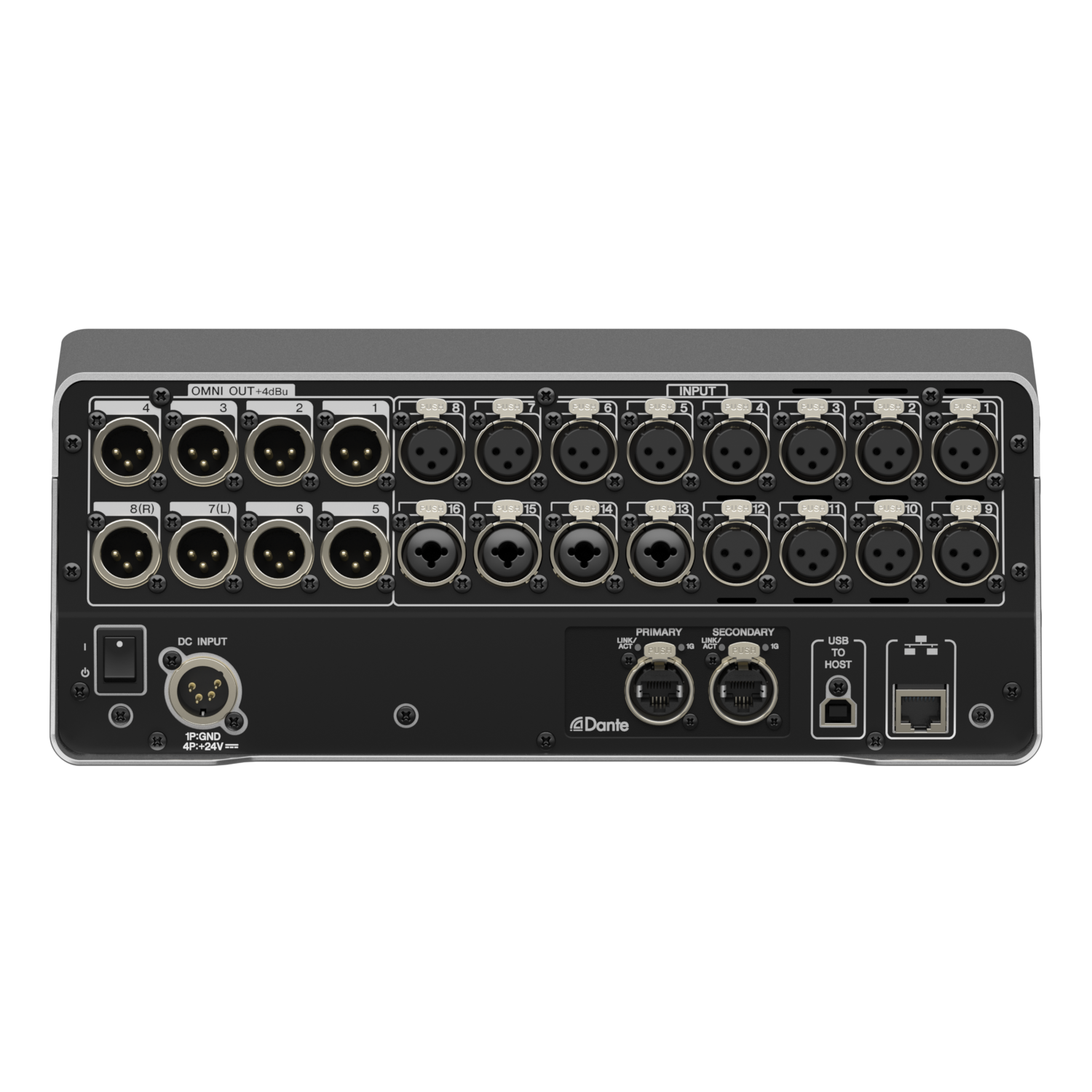 - Dante I/O: 2 (etherCON: Primary/Secondary, 16 In/Out)