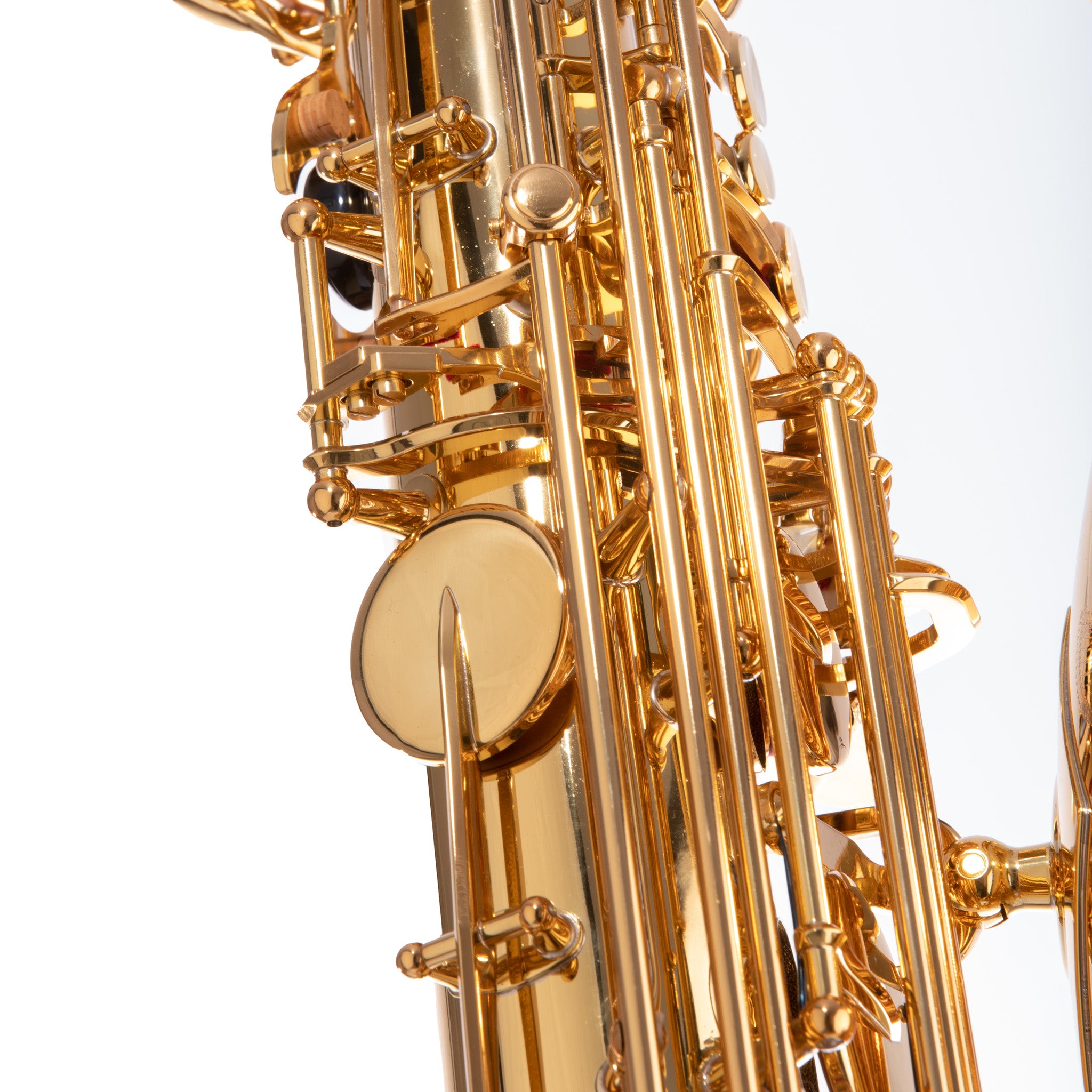 - Bore and neck design: A hydro-formed neck and responsive bore design ensure that the large saxophone's response is quick, in-tune, and rich in tone.