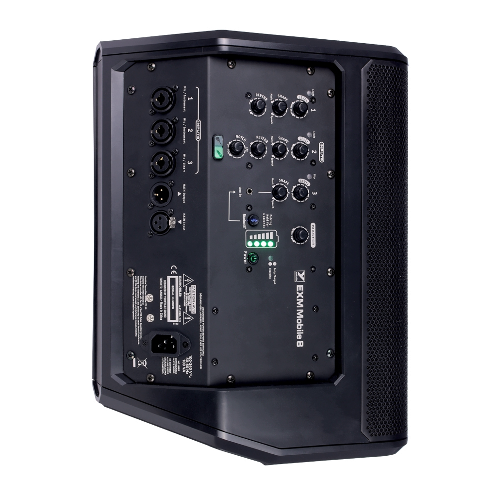 Boasting 5 ½ hours of performance at high levels, the EXM Mobile8 battery-advantage proves you can take your sound anywhere. With an 8-inch woofer and a coaxial mid-range driver/tweeter, the EXM Mobile8 is a true 3-way speaker in a landscape where most battery-powered compact speakers of this size are 2-way models. The 3-way design provides max bass and ultra intelligibility, and the multi-angle geometry offers flexibility to fit any environment.